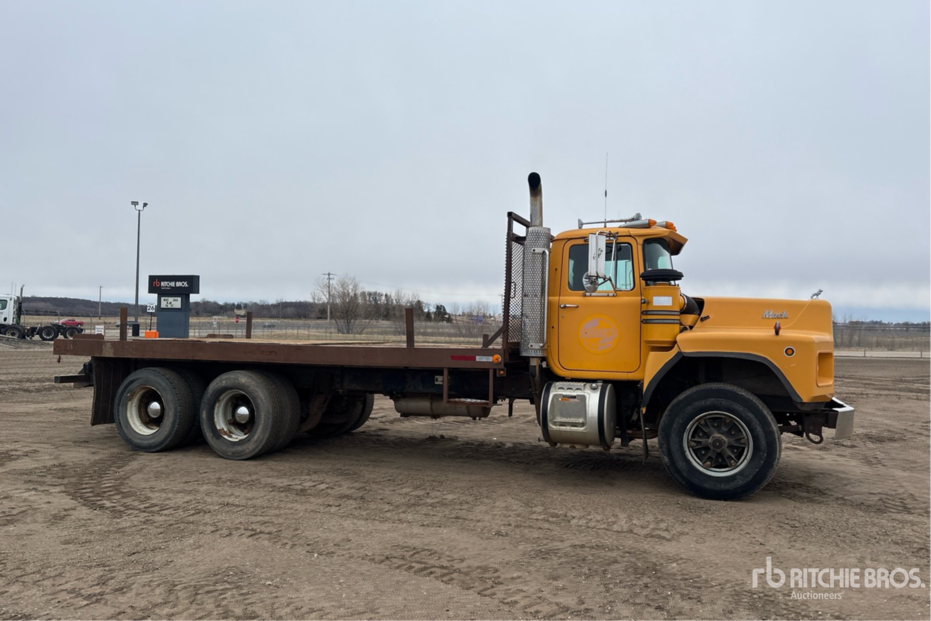 Located in Lane 11 Spot 6, Mack E6 6 Cylinder 9 L Diesel 350 hp Engine, Mack T2090 9-Speed Manual Transmission, 385/65R22.5 Front Tires, 11R22.5 Rear Tires, Double Frame, Air Ride Suspension, 224 in Wheelbase, 20 ft x 96 in Bed, Pintle Hitch