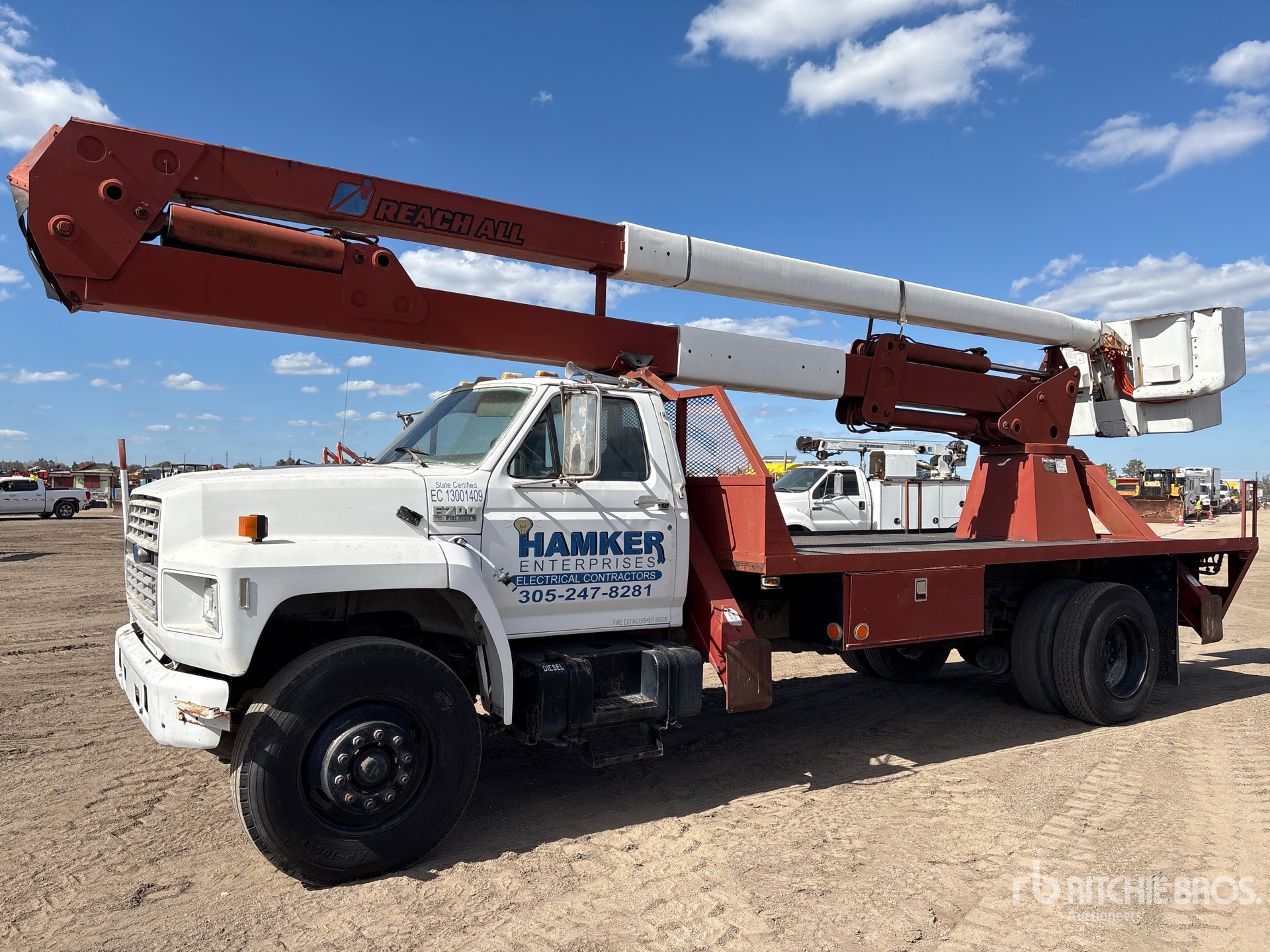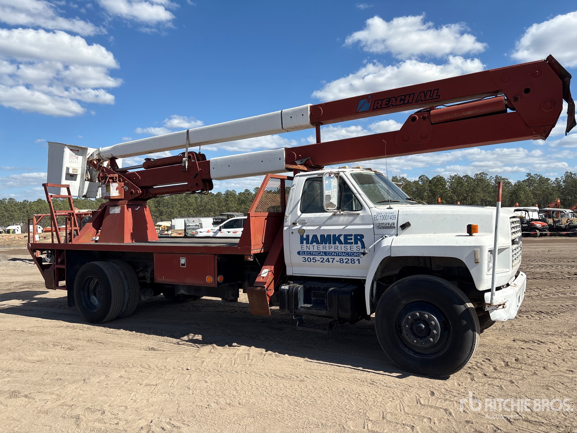 CUMMINS B5.9-210 Diesel 210 hp Engine, FORD 5-Speed Manual Transmission, 12000 lb Front Axle, 21000 lb Rears, 33000 lb GVWR, 11R22.5, Two-Person Boom, A-Outriggers, 17 ft 3 in x 97 in Bed