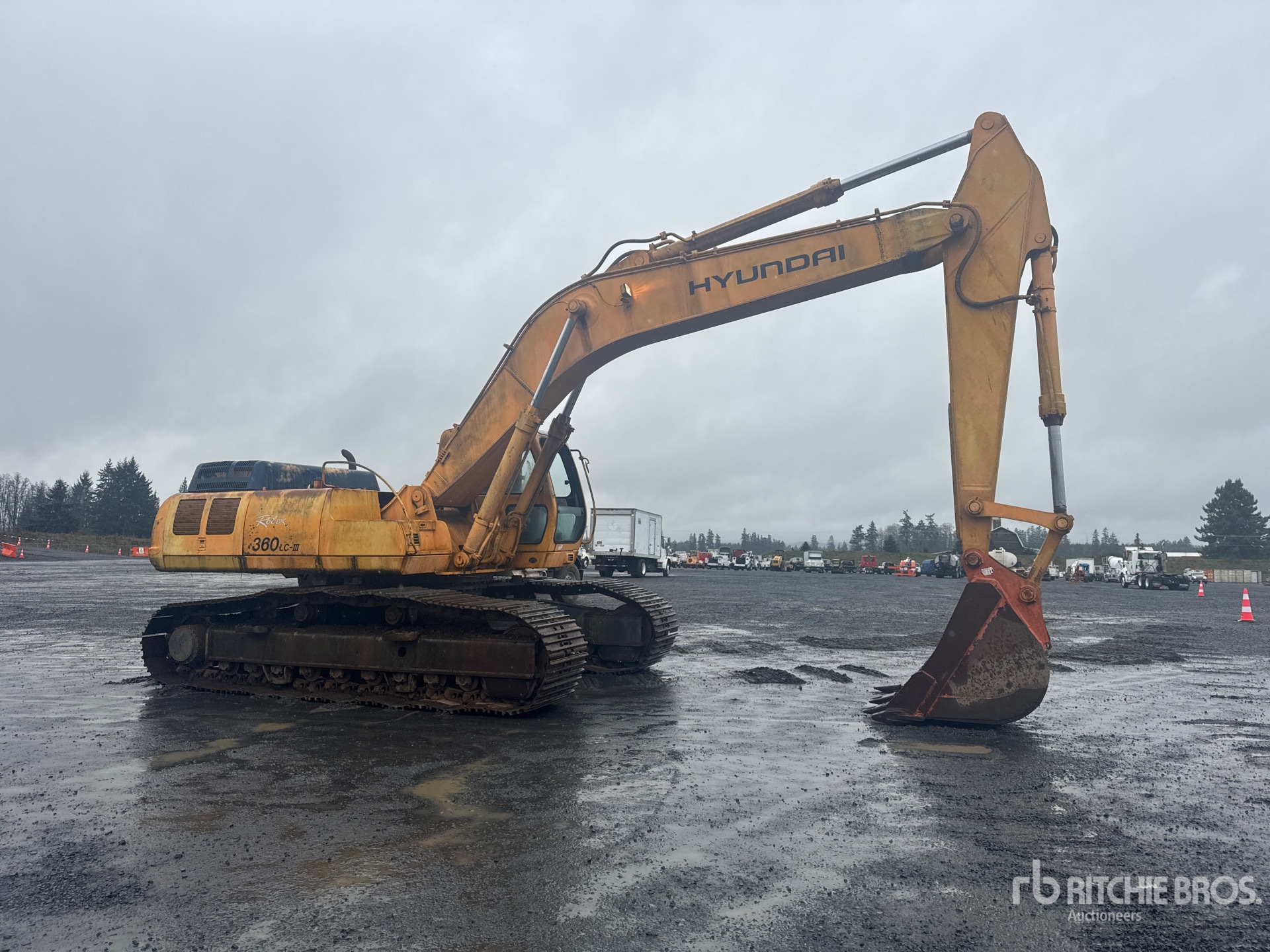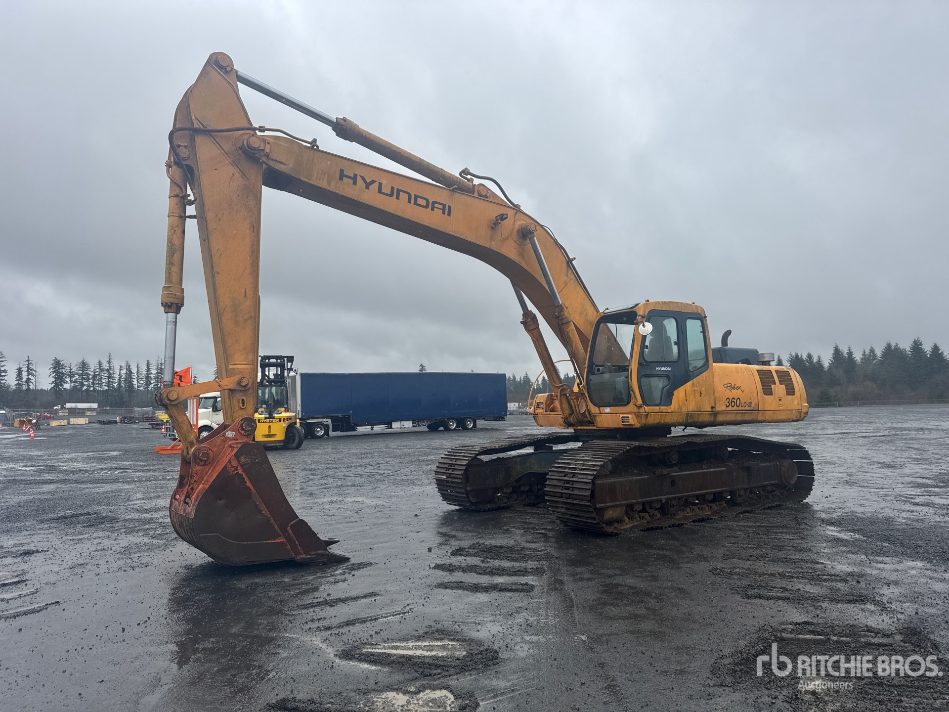 1997 US EPA Label, 12 ft Stick, 31.5 in Triple Grouser Track Shoes, 53.5 in Bucket