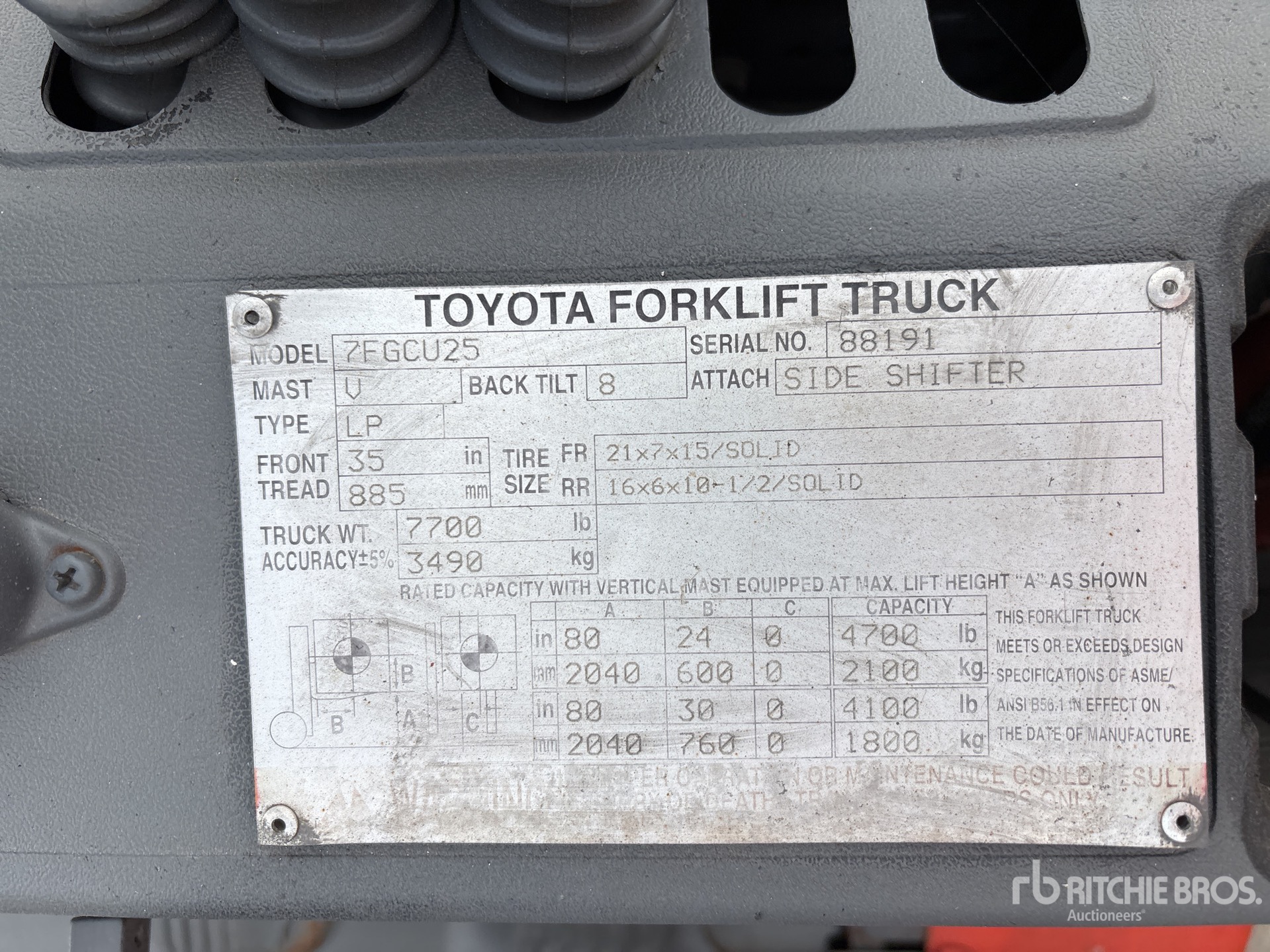 Các số đo được đưa ra chỉ là ước tính. Kích thước chịu tải thực tế có thể khác tùy theo chiều cao của xe tải/rơ-moóc và cấu hình/vị trí phần máy chịu tải. Người mua có trách nhiệm đo tất cả các tải trọng trước khi rời khỏi địa điểm đấu giá của chúng tôi để đảm bảo tải trọng đủ an toàn để được vận chuyển. Người mua phải xác nhận tất cả các số đo. Không dựa vào các số đo này để phục vụ mục đích vận chuyển.