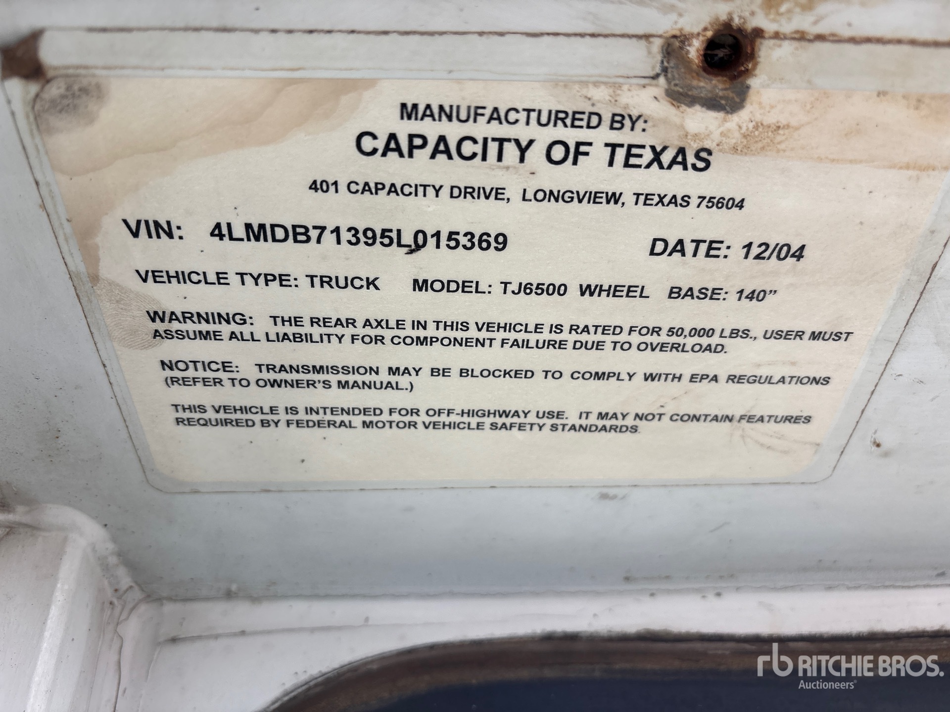 Một nhân viên Ritchie Bros. có trình độ chuyên môn đã thu thập thông tin chi tiết về thiết bị và thực hiện kiểm tra chức năng về các bộ phận chính của tài sản này. Bạn hoặc người được ủy quyền cũng có thể kiểm tra bất kỳ mặt hàng nào tại chỗ trước khi đấu giá vào ngày đấu giá.