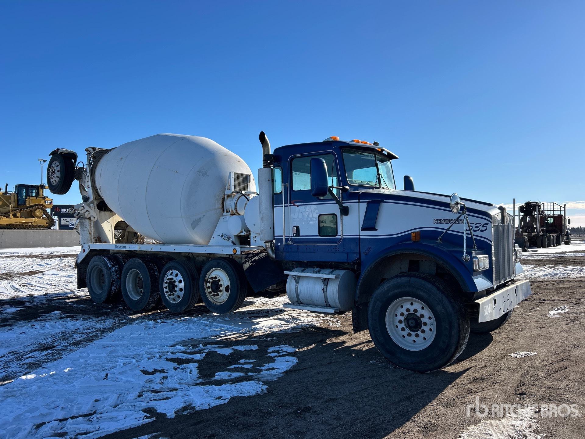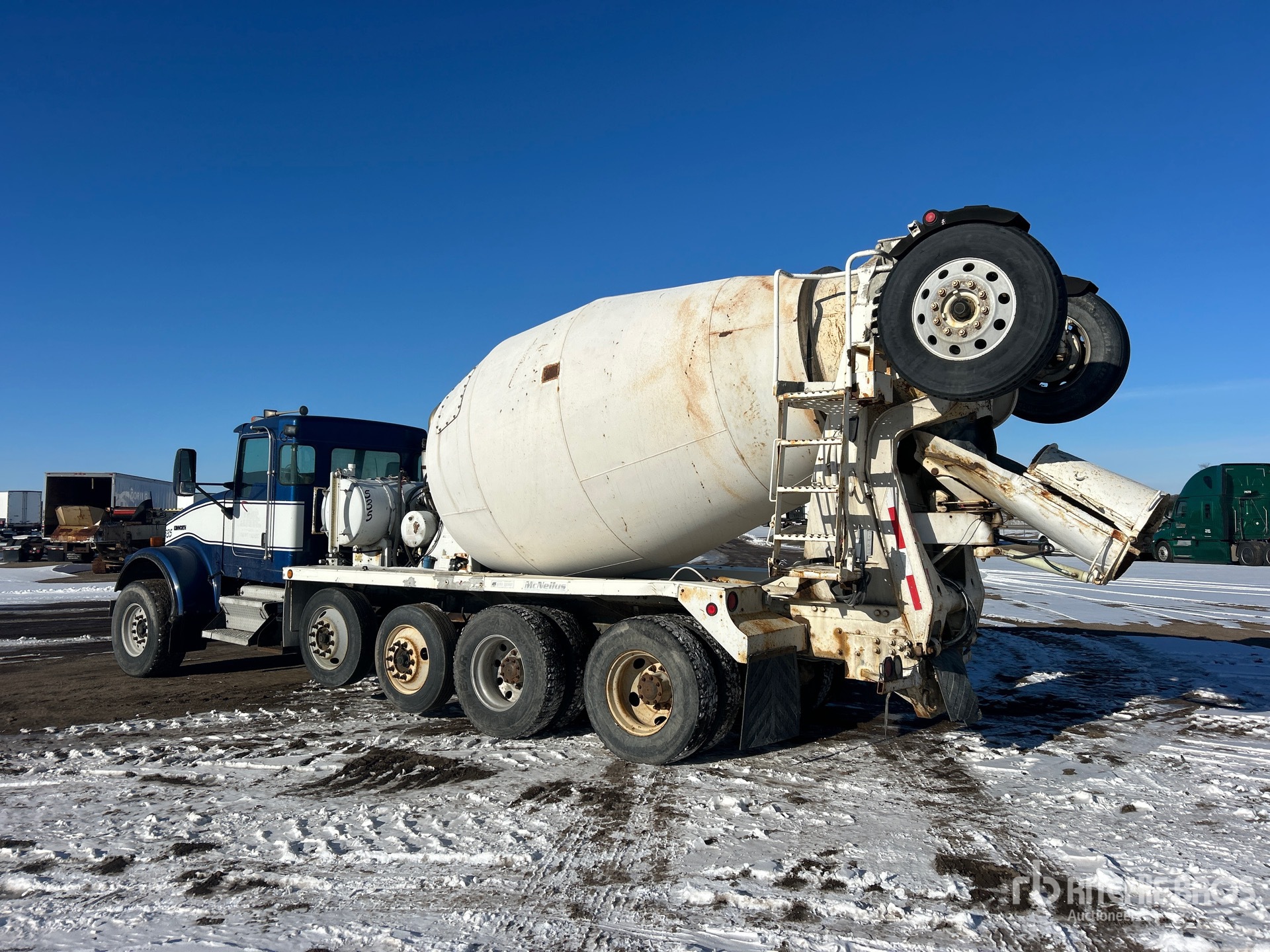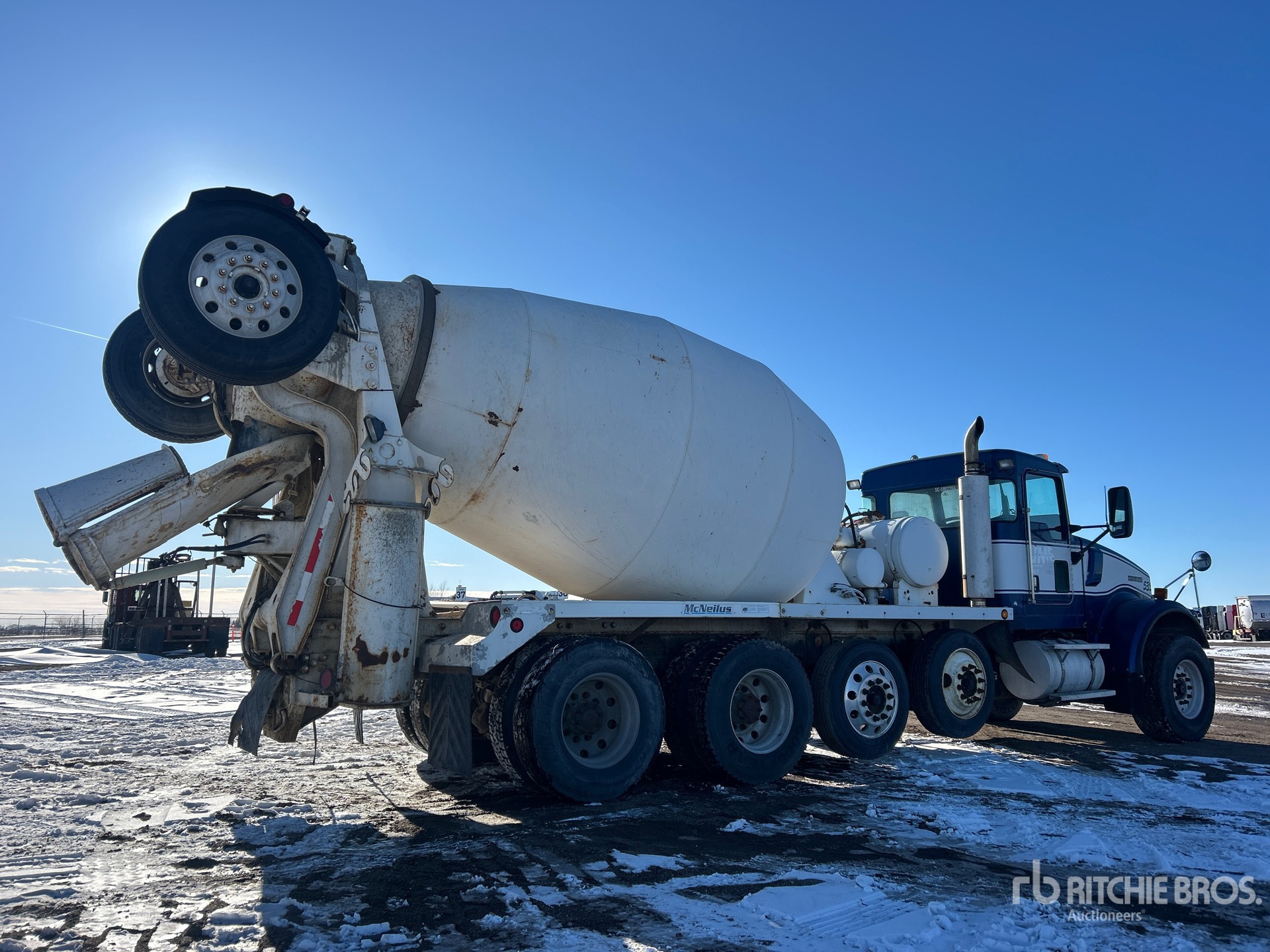 Cummins ISM320V 6 Cylinder 10.8 L 305 hp Engine, 2004 US EPA Label, Eaton Fuller 8LL Manual Transmission, Differential Lock, 20000 lb Front Axle, 46000 lb Rears, 80000 lb GVWR, Air Ride Cab, Aluminum Front Wheels, 425/65R22.5 Front Tires, 11R22.5 Rear Tires, 2 Steerable Air Lift Pusher Axle, Trailing Tag Axle, Chalmers Suspension, 248 in Wheelbase, McNeilus 11 cyd Mixer Unit, 1 Removable Chutes