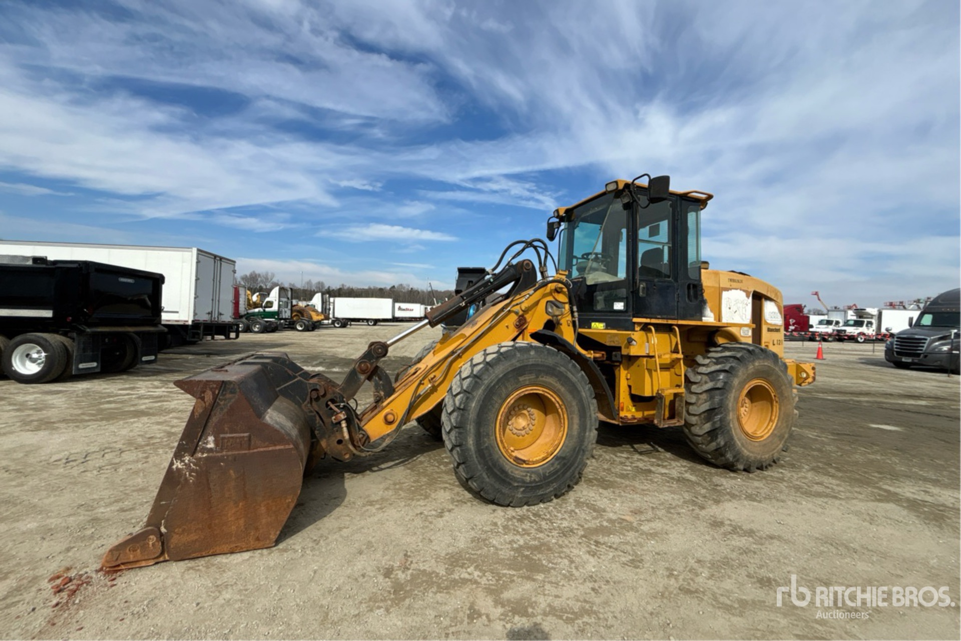 Enclosed Cab, Air Conditioner, Autoshift, Auxiliary Hydraulics, Hydraulic Coupler, 100 in Bucket, 20.5R25 Tires