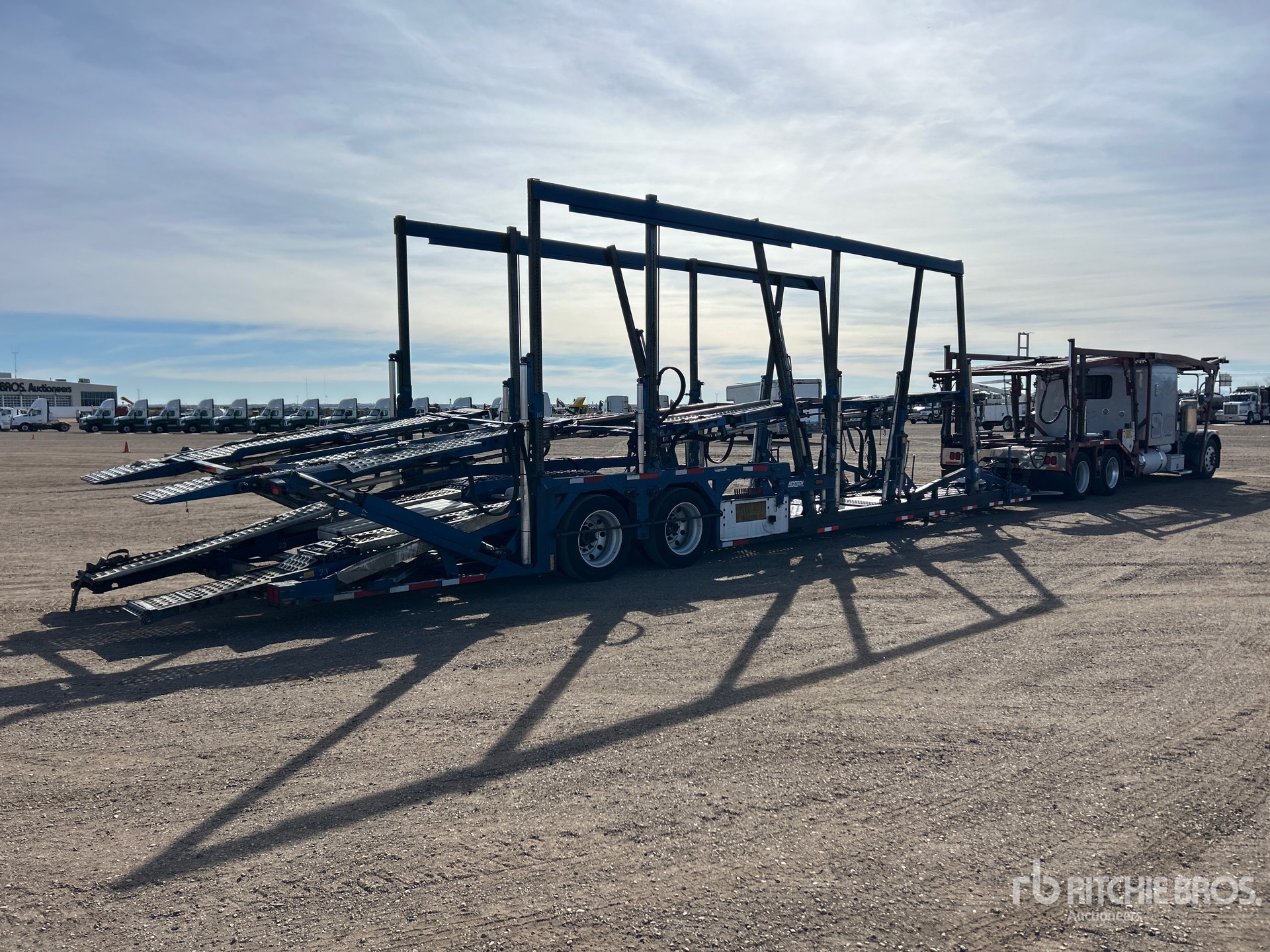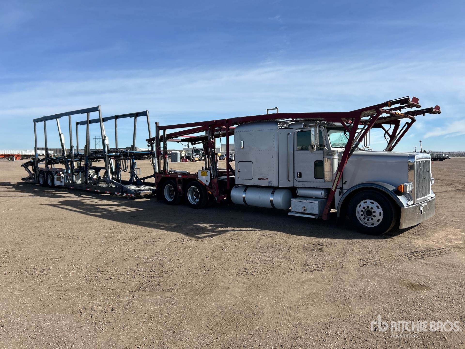 Cat C15 Diesel Engine, 6192 Engine hrs, Engine Brake, Eaton Fuller Manual Transmission, 12000 lb Front Axle, 36000 lb Rears, 47000 lb GVWR, 63 in Flat Top Sleeper Cab, Aluminum Wheels, 295/75R22.5, Air Ride Suspension, 255 in Wheelbase, PTO, 11 Vehicle Capacity, Hydraulic Lift, Chain Tie Downs, SOLD WITH - 2014 Cottrell CX-11HCSD T/A, Trailer S/N - 5E0AJ1441EG566008, Soft Ties, Aluminum Wheels, 255/70R22.5 Tires
