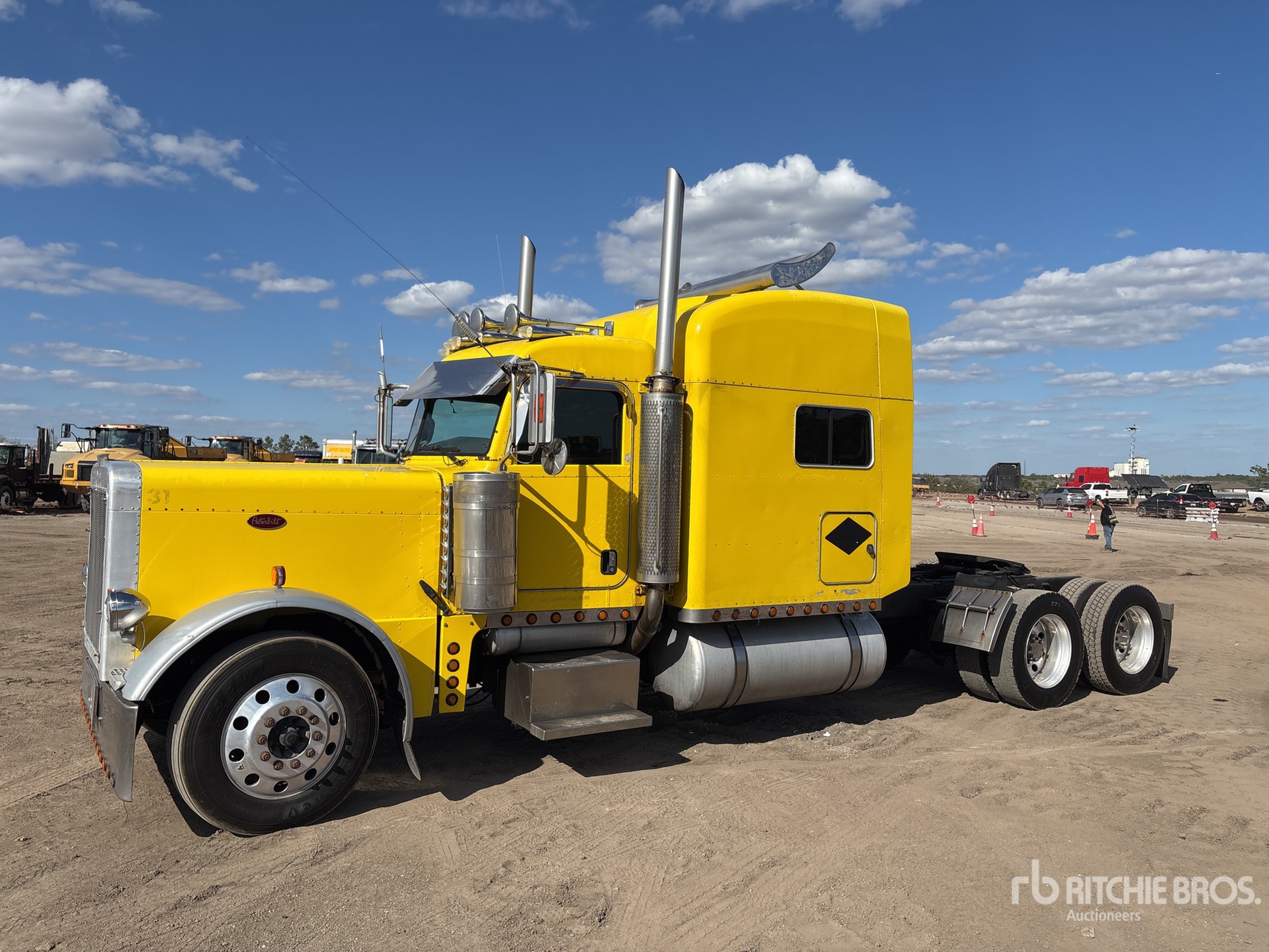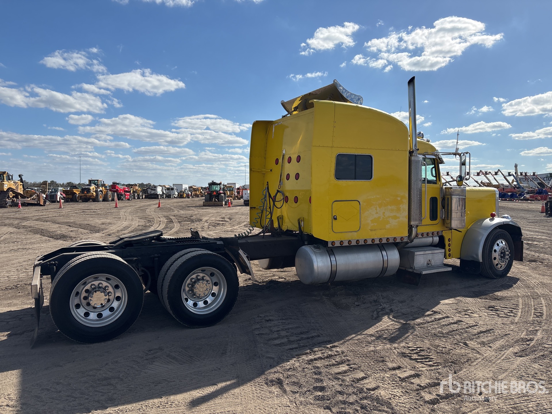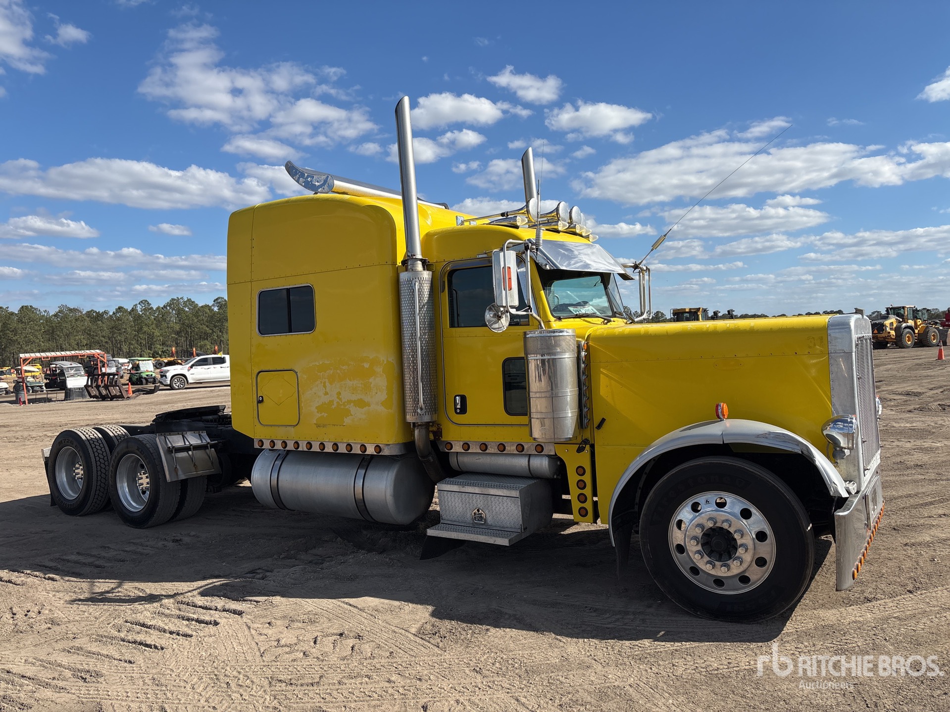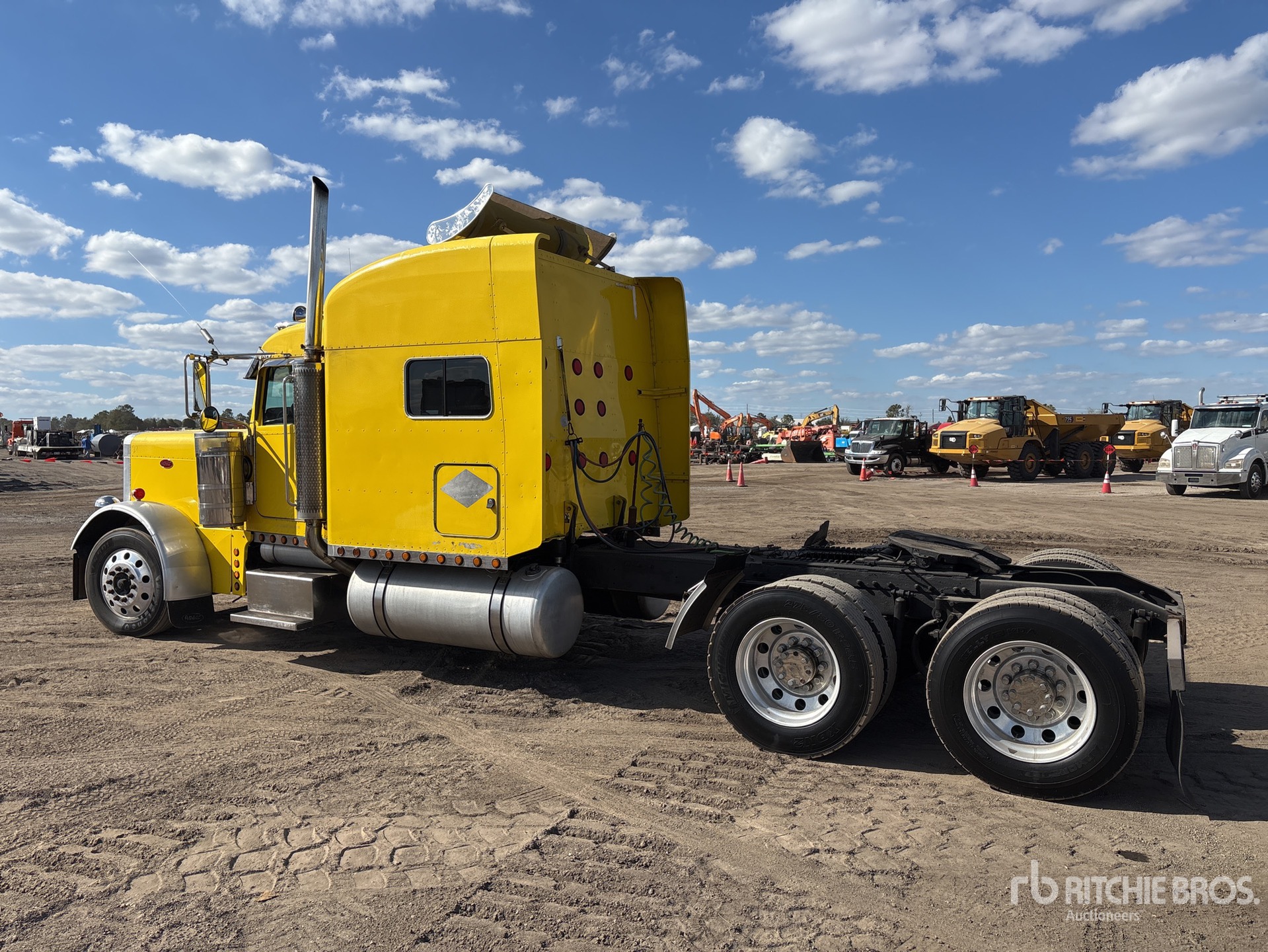 Cat C15 Engine, 48937 Engine hrs, Eaton Fuller 18-Speed Manual Transmission, 12000 lb Front Axle, 36000 lb Rears, 48000 lb GVWR, Engine Brake, Differential Lock, 68 in Mid Roof Sleeper Cab, 278 in Wheelbase, Air Suspension, Aluminum Wheels, 285/75R24.5 Front Tires, 275/80R24.5 Rear Tires, Air Sliding 5th Wheel, Dual Fuel Tanks