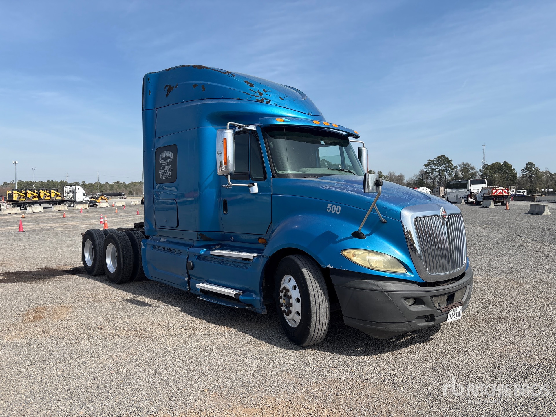 Located in Lane 28 Spot 50, Cummins ISX 400 hp Engine, 2007 US EPA Label, 11718 Engine hrs, Eaton Fuller 10-Speed Manual Transmission, 12000 lb Front Axle, 40000 lb Rears, 52000 lb GVWR, Engine Brake, 56 in High Rise Sleeper Cab, 201 in Wheelbase, Air Suspension, Aluminum Wheels, 11R22.5, Ballrace 5th Wheel, Dual Fuel Tanks