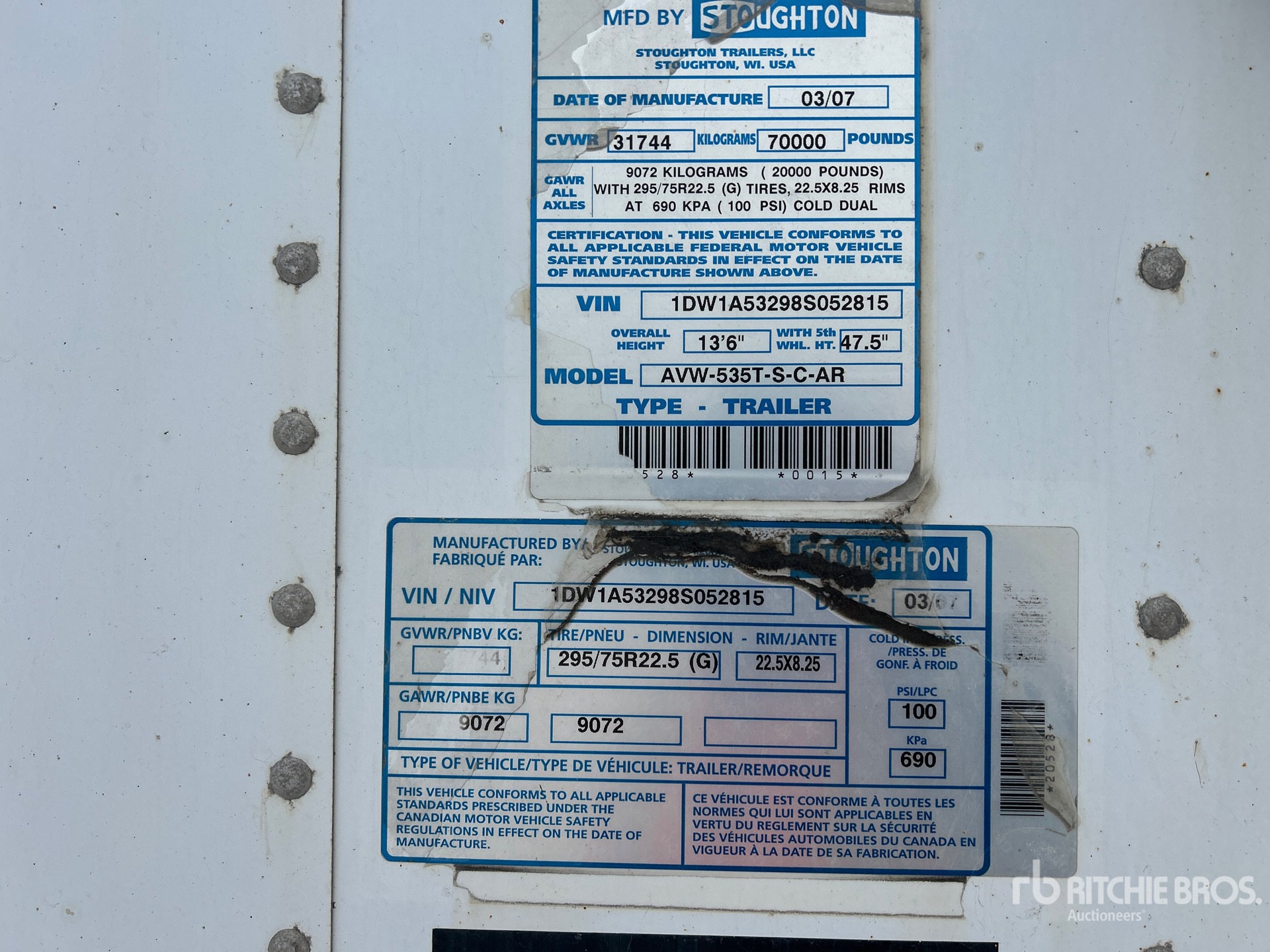 Air Ride Sliding Suspension, Hardwood Floor, Swing Door, 11R22.5 Tires, 70000 lb GVWR