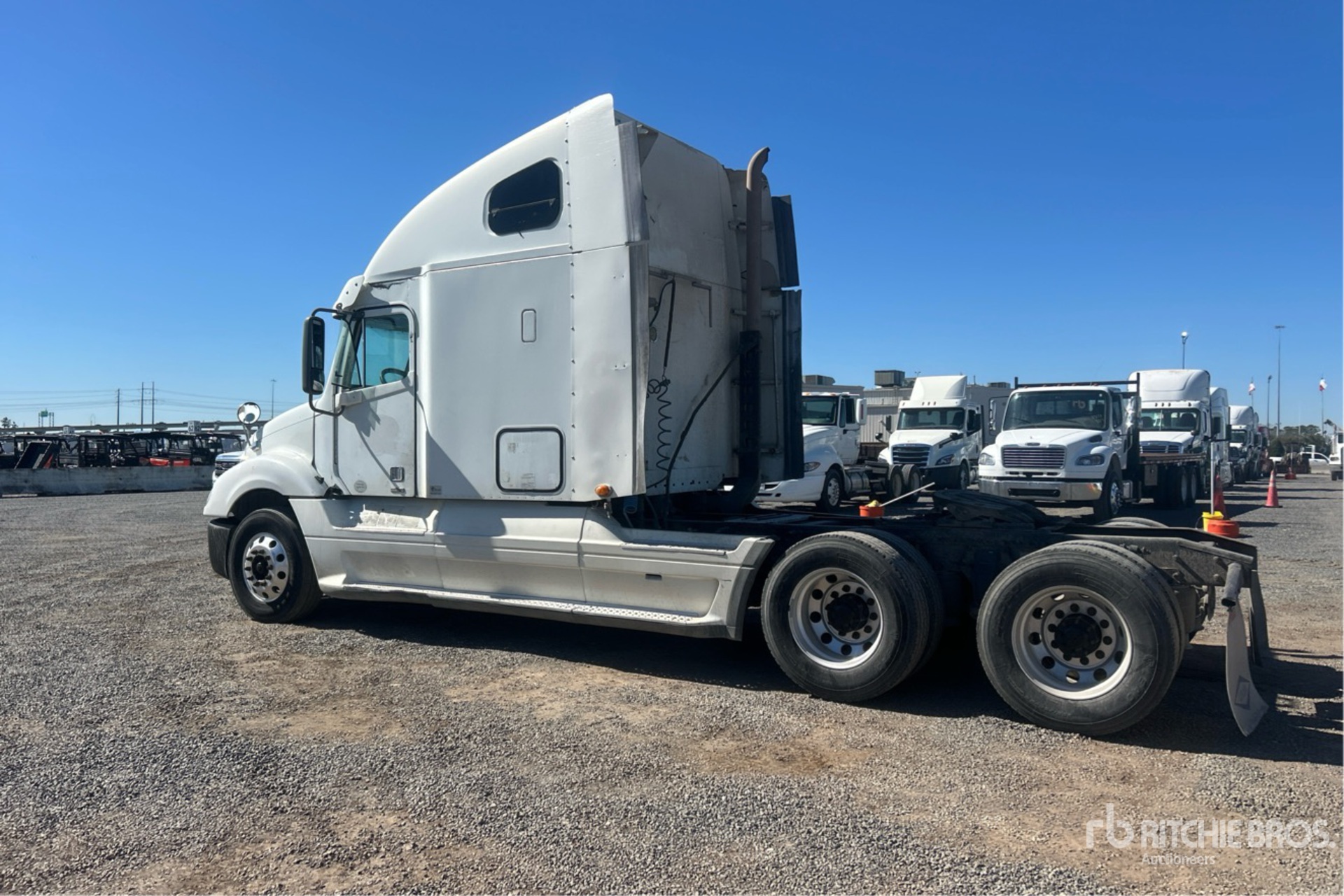 Detroit Series 60 515 hp Engine, 2008 US EPA Label, 36534 Engine hrs, Automated Transmission, 12000 lb Front Axle, 38000 lb Rears, 50000 lb GVWR, Engine Brake, 70 in High Rise Sleeper Cab, 230 in Wheelbase, Air Suspension, Aluminum Outer Wheels, 295/75R22.5, Air Sliding 5th Wheel, Dual Fuel Tanks