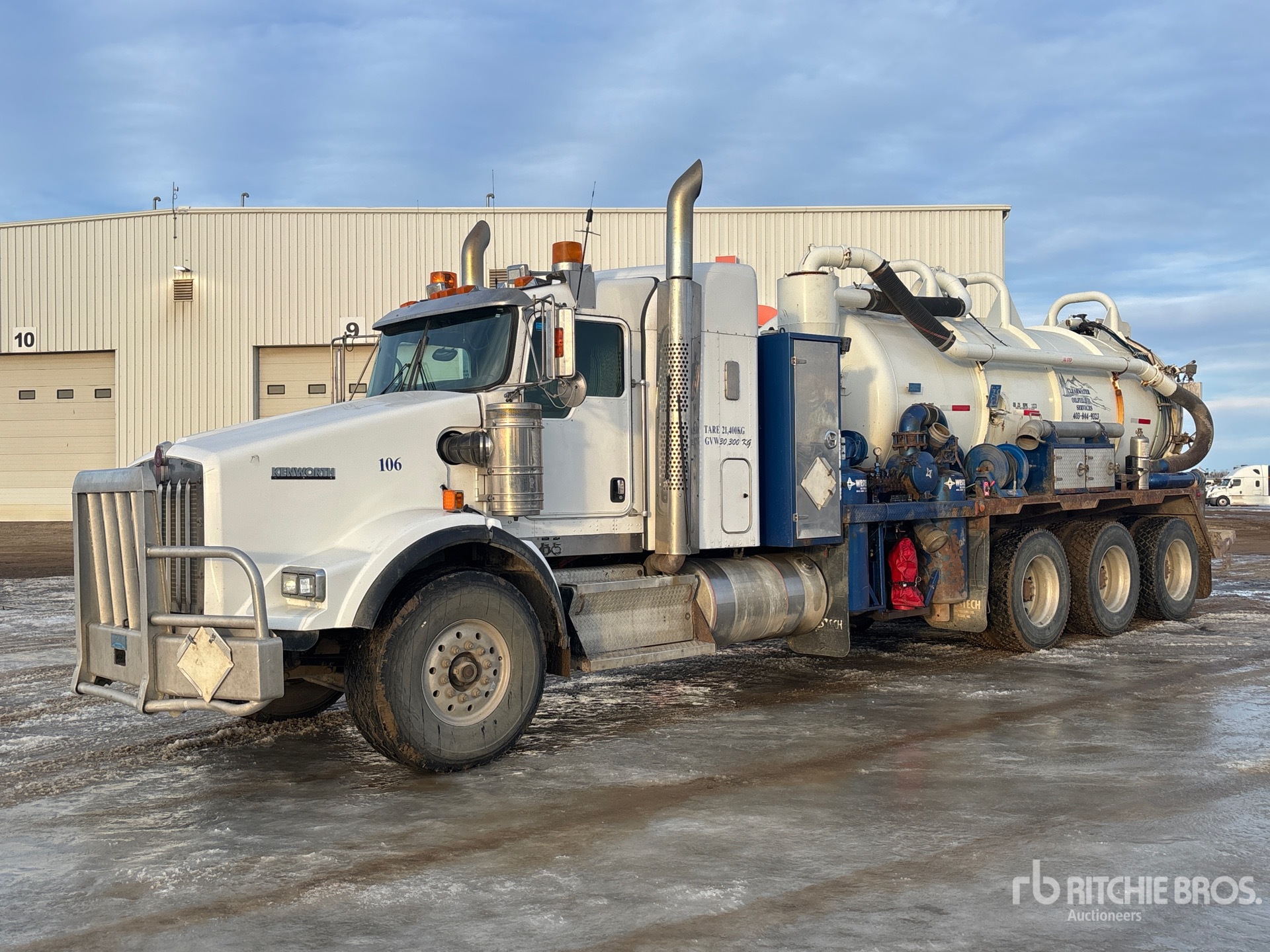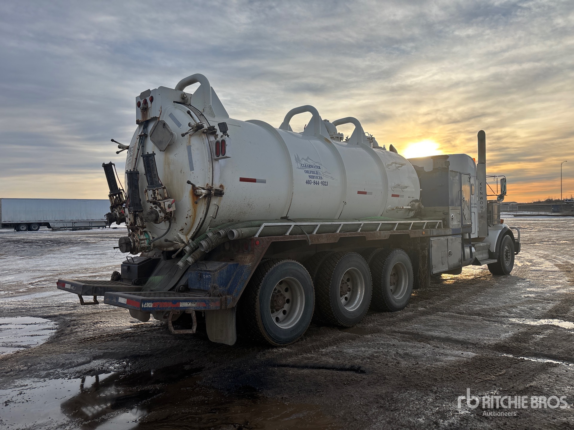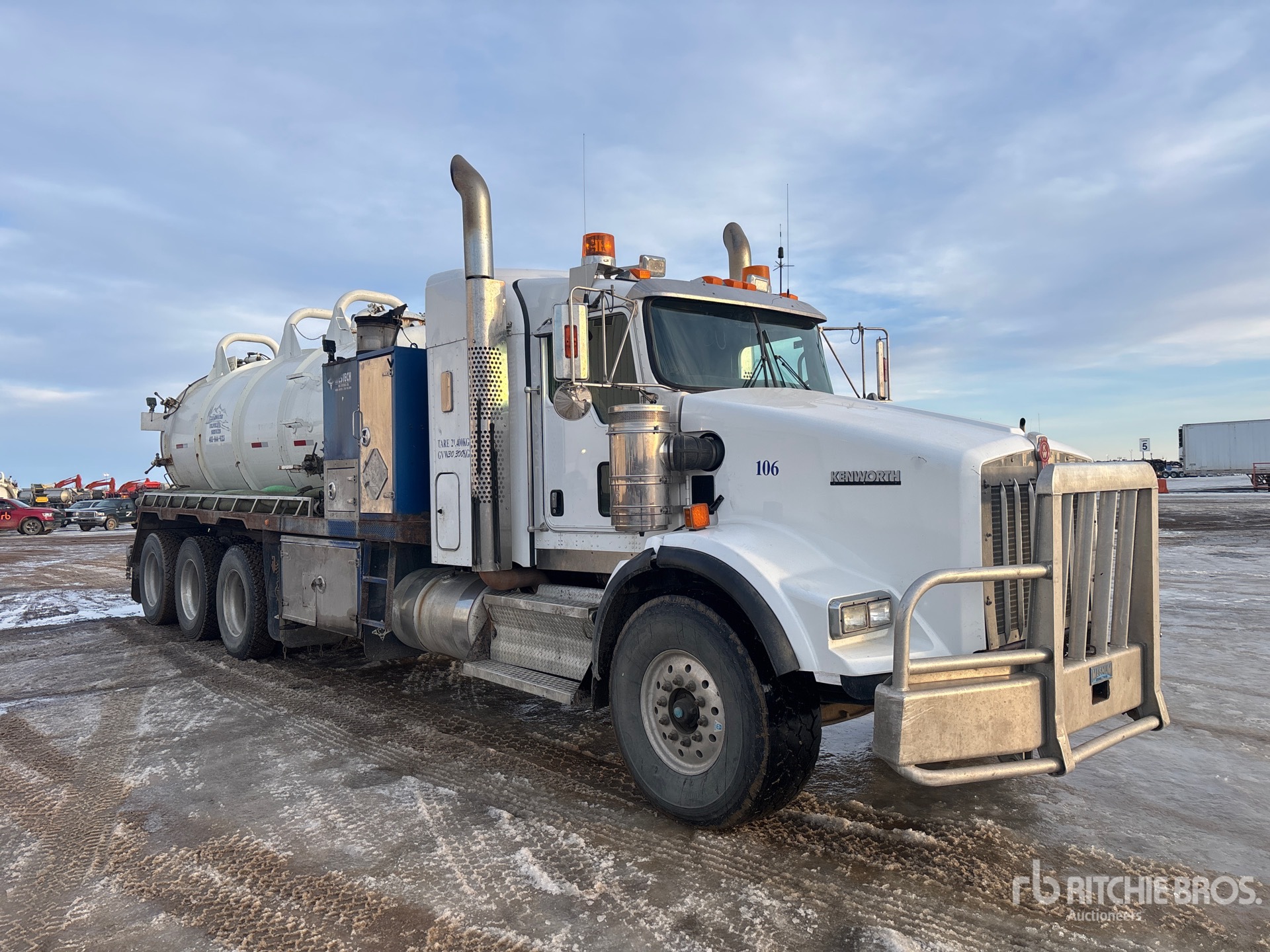 Cat C15 6 Cylinder 14.6 L Diesel 490 hp Engine, 2008 US EPA Label, Positive Air Shutoff, 13752 Engine hrs, Engine Brake, Eaton Fuller RTLO-18918B 18-Speed Manual Transmission, Triple Differential Locks, 20000 lb Front Axle, 69000 lb Rears, Dana T69-170HP Drive Axles, 4.30:1 Axle Ratio, 78000 lb GVWR, Air Ride Cab, 28 in Flat Top Sleeper Cab, Aluminum Wheels, 445/65R22.5 Front Tires, 11R24.5 Rear Tires, Dual Steering Boxes, Double Frame, Neway Air Ride Suspension, 292 in Wheelbase, Dual PTO, Hydraulic Oil Cooler, Steel 11455 L Debris Tank, TC407 Code, Hoist, Vibrator, 3000 L Fresh Water Tank, Hydraulic Lift Tailgate, Wash Down System, Manual Tailgate Locks, Cat 3517 Hydraulic Driven Pump, Hibon 820XL Blower, Emerson Boiler