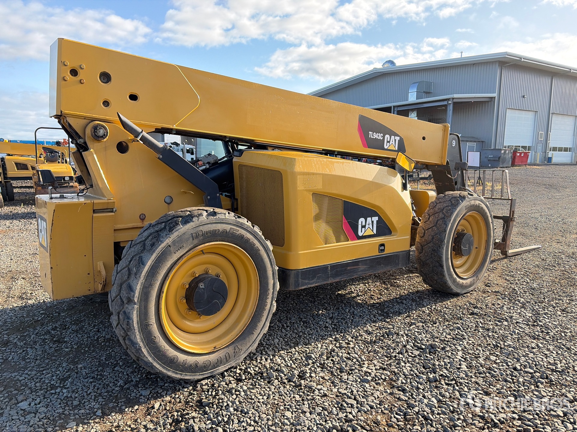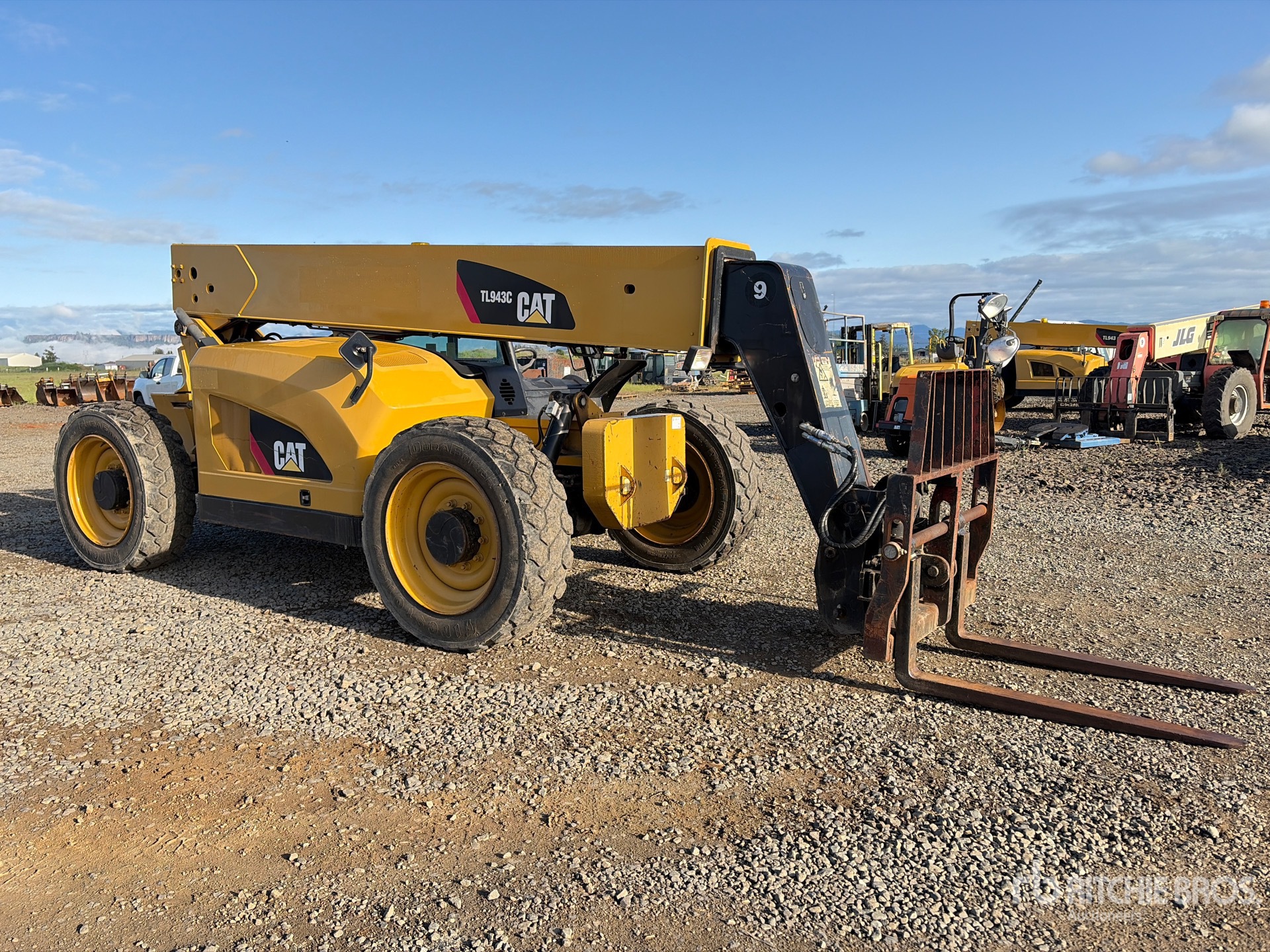 Open Operator Station, 43 ft Max Lift Height, 9000 lb Max Lift Capacity, 2014 US EPA Label, 48 in Forks, Tilt Carriage, Manual Coupler, Auxiliary Hydraulic Plumbing, 370/75-28 Foam Filled Tires