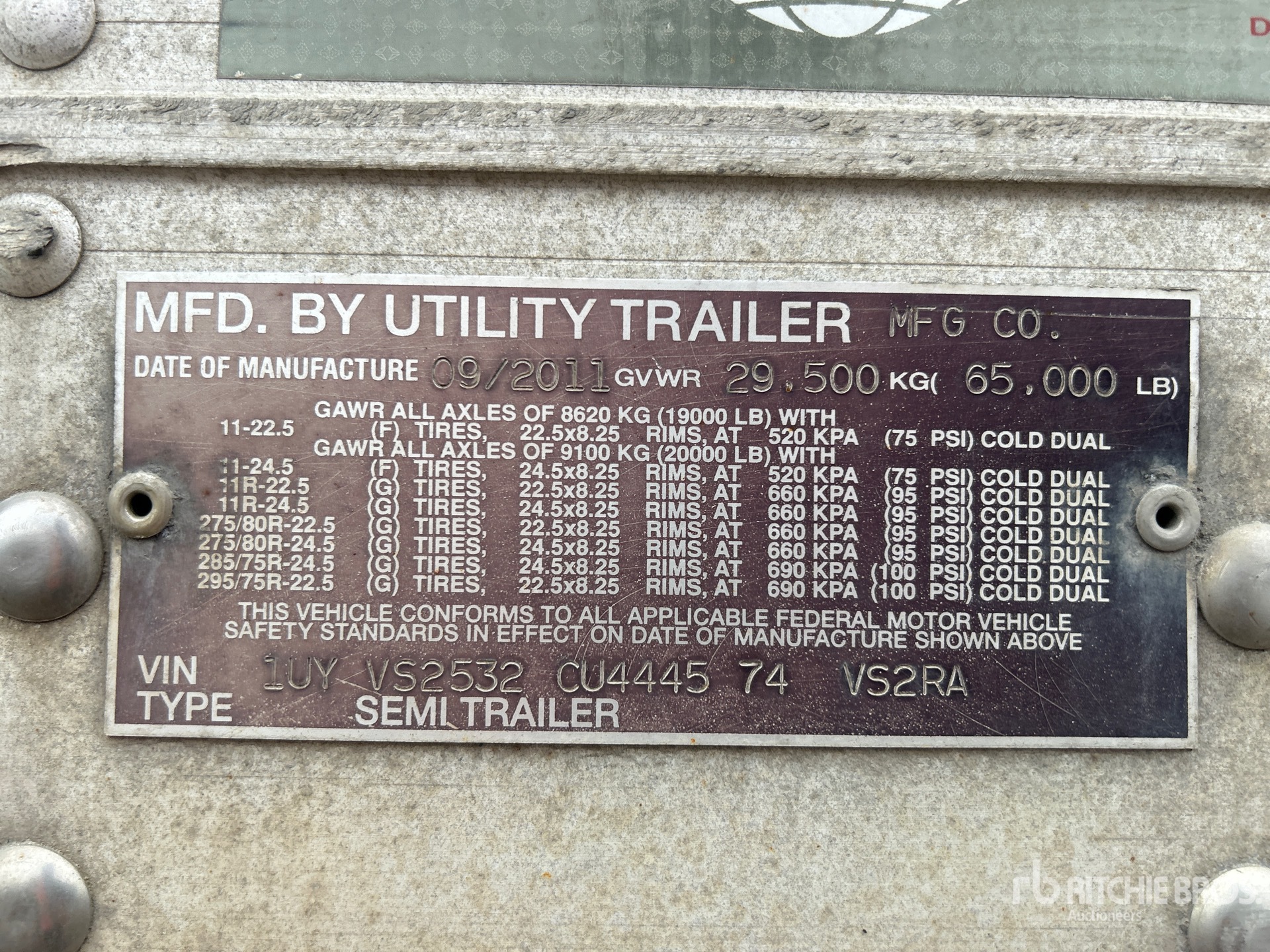 Air Ride Sliding Suspension, Ducted Floor, Swing Door, 11R22.5 Tires, 65000 lb GVWR