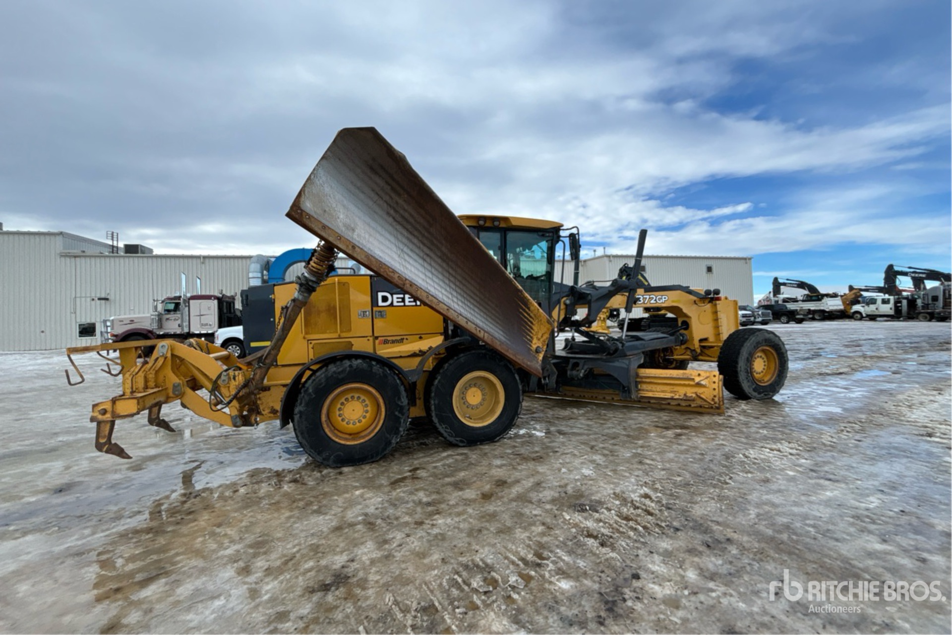 Enclosed Cab, Low Profile, Air Ride Seat, Differential Lock, 14 ft / 4.27 m Moldboard, Push Block, Snow Wing, Combination Ripper/Scarifier, 17.5R25 Tires, Complete-Retirement-Dispersal-for-Mur-Cal-Services-Ltd
