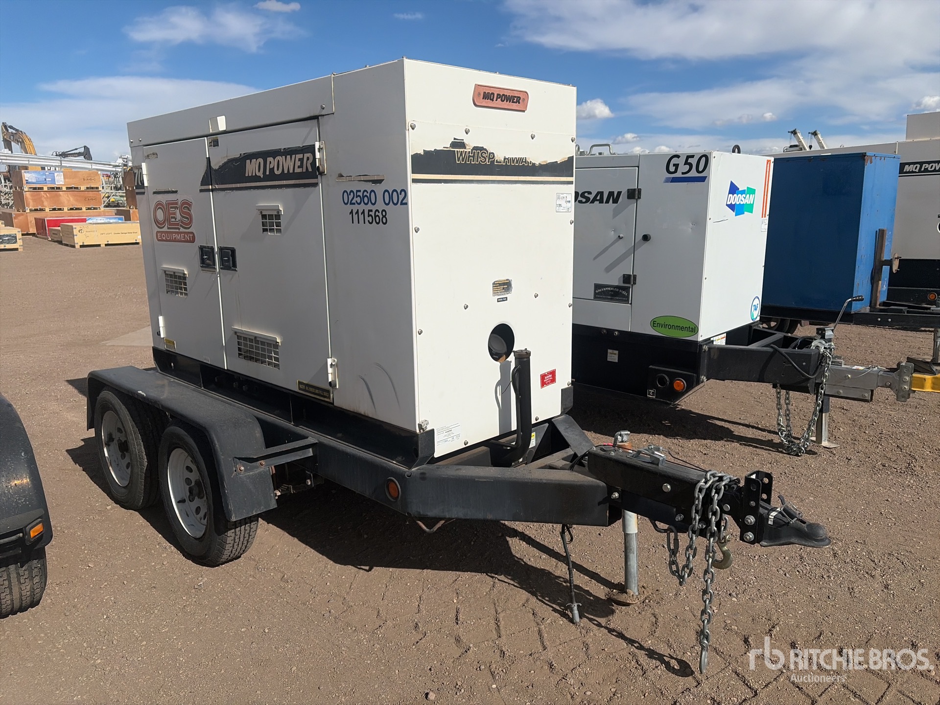 Isuzu 4 Cylinder 2.99 L Diesel Engine, /56 kW Rated 3 Phase Output, 240 V / 480 V Rated Voltage, /40 kW, Rated Single Phase Output, 120 V / 240 V Rated Voltage, 240 V & 120 V Receptacles, Sound Attenuated, Bottom Mounted Fuel Tank, Ball Hitch Carrier Trailer, Surge Brakes