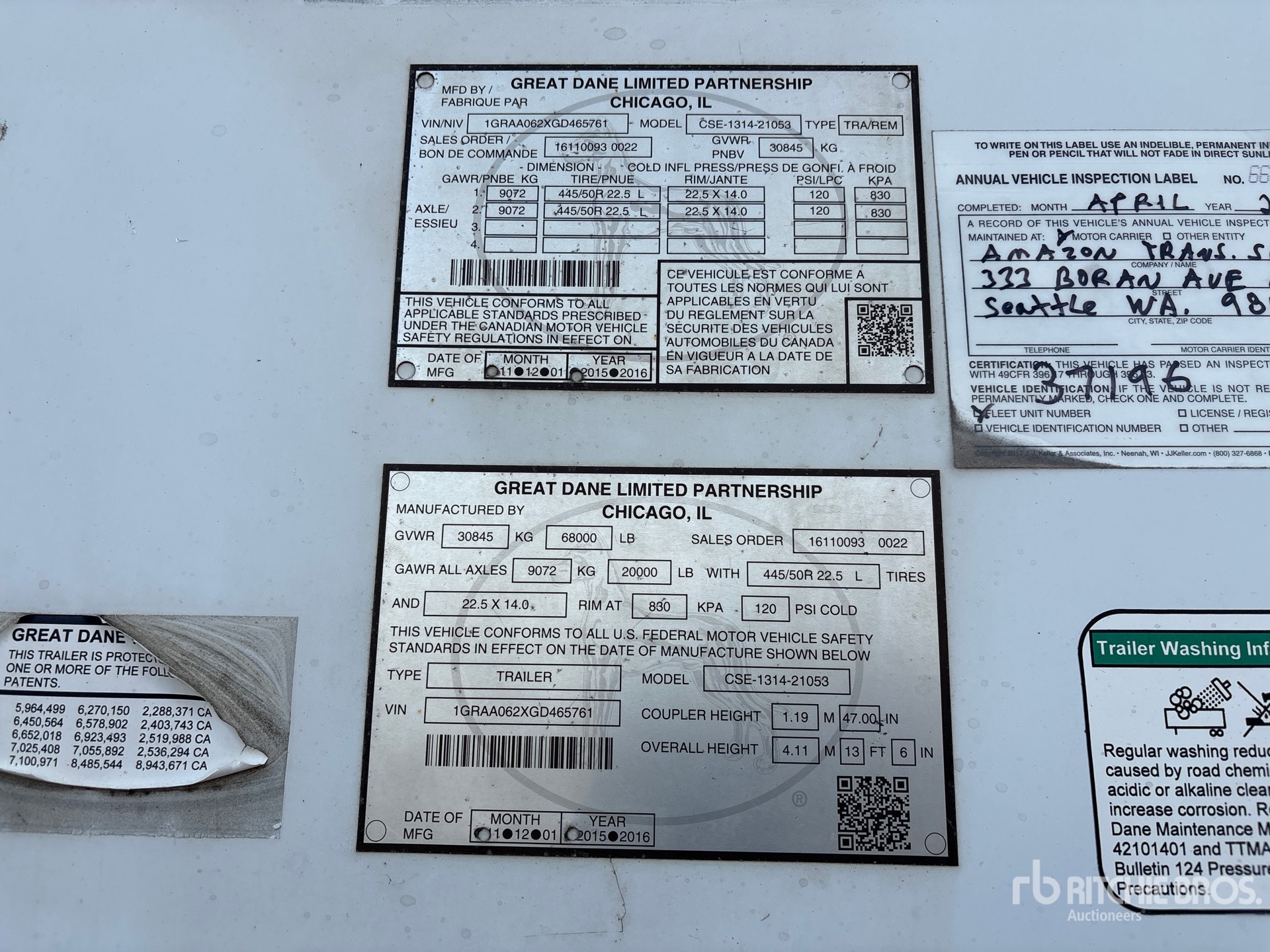 Located in Lane 15 Spot 7, Aluminum/Steel Combination Frame, Air Ride Sliding Suspension, Side Skirts, Hardwood Floor, Swing Door, 11R22.5 Tires, 68000 lb GVWR