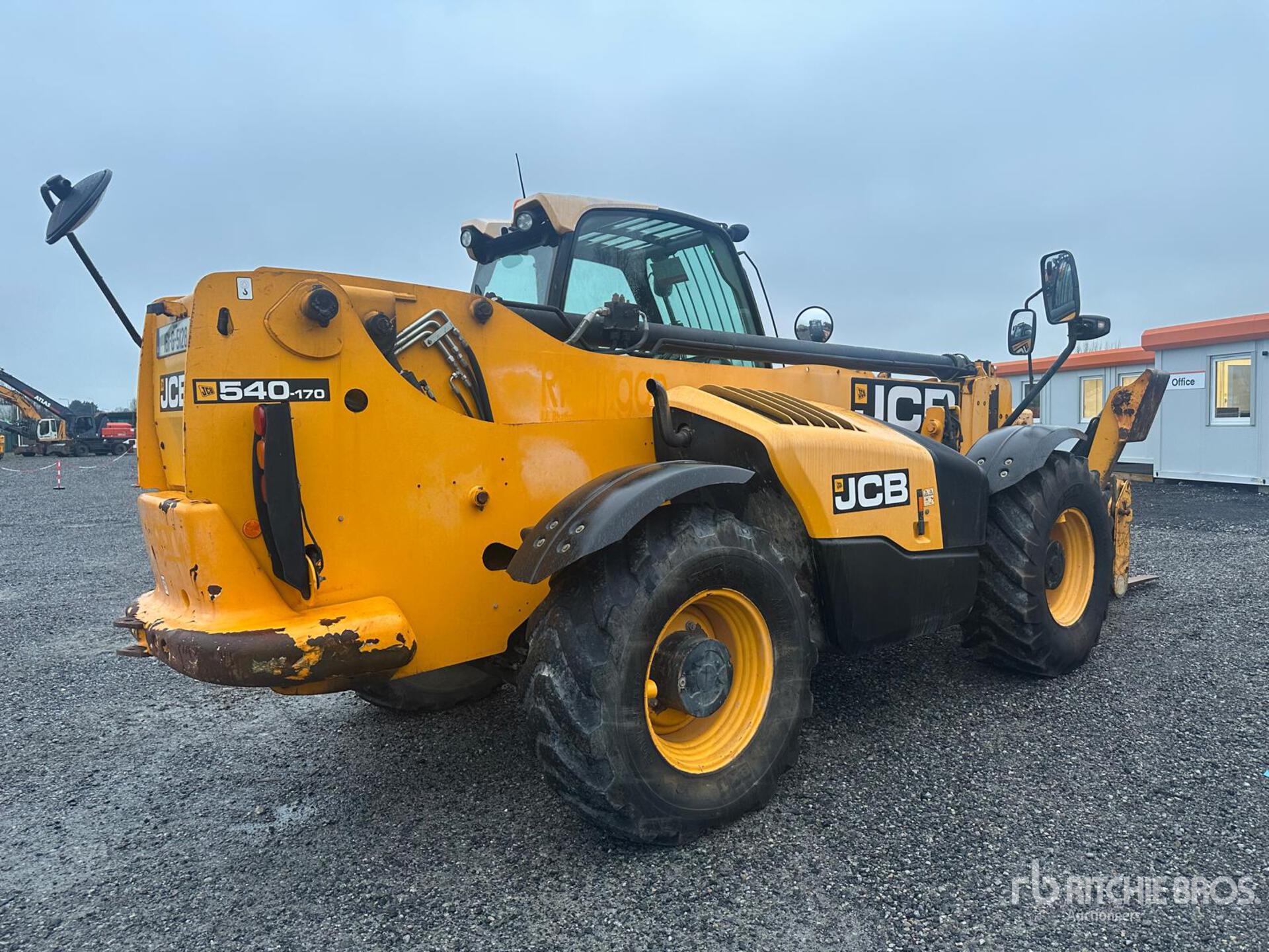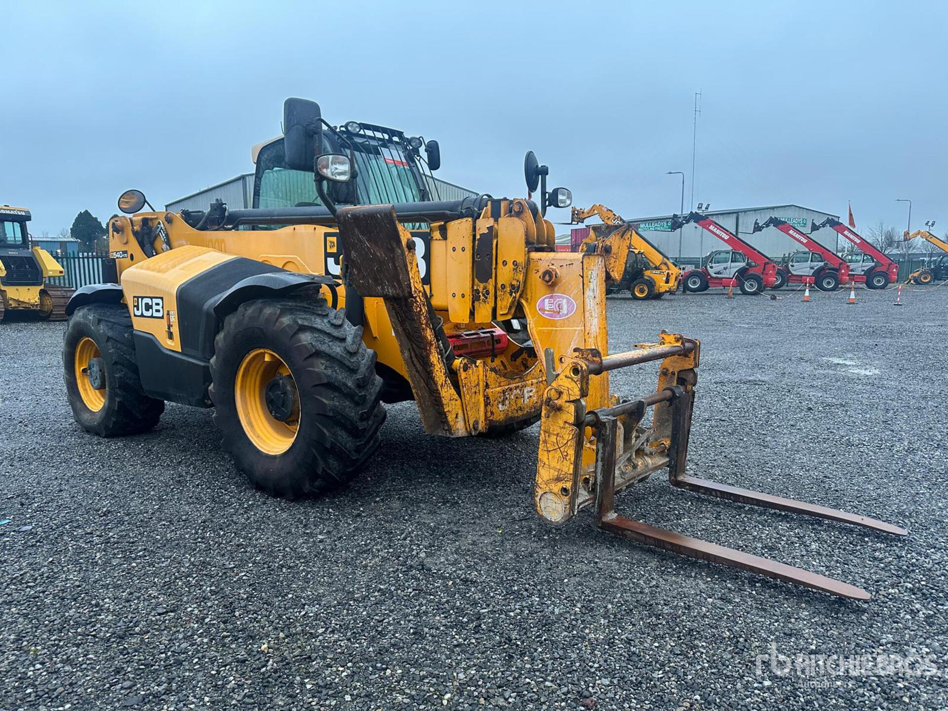 Enclosed Cab, Rear View Camera, Air Ride Seat, Load Moment Indicator, 16.70 m Max Lift Height, 4000 kg Max Lift Capacity, Requires AdBlue, Forks, Manual Coupler, Outriggers, Frame Leveling, Auxiliary Hydraulic Plumbing, 440/80/R34 Tires