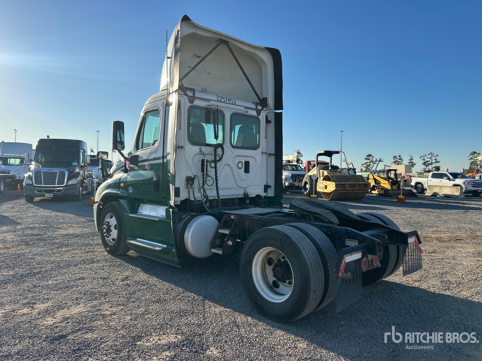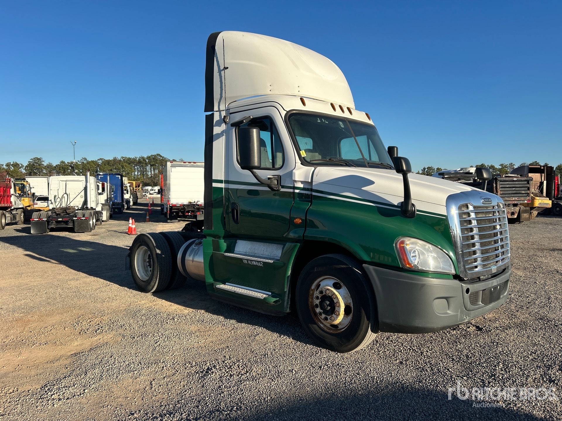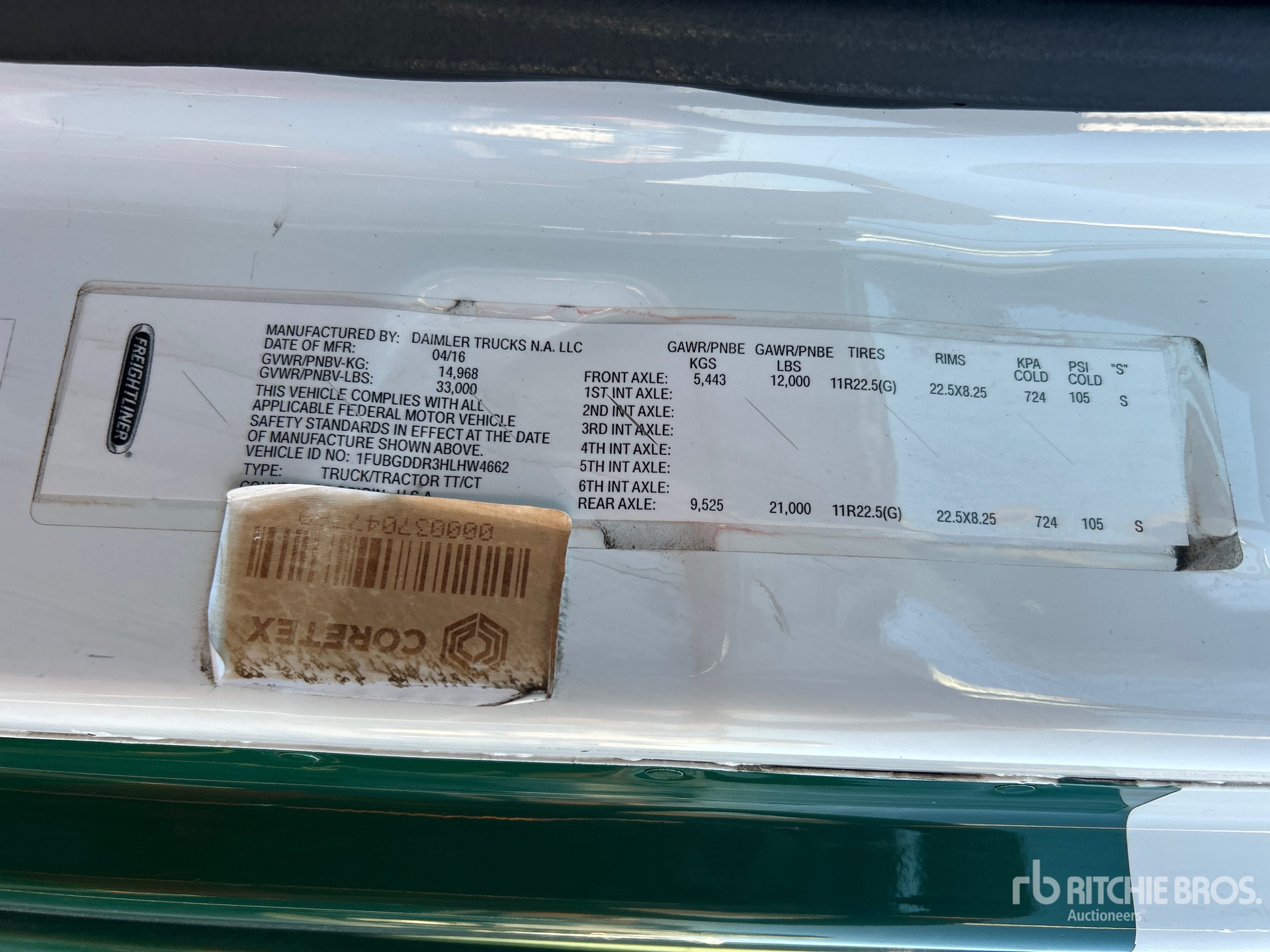 Detroit DD15 455 hp Engine, 2017 US EPA Label, 19672 Engine hrs, Eaton Fuller FRO-15210C 10-Speed Manual Transmission, 12000 lb Front Axle, 21000 lb Rears, 33000 lb GVWR, Engine Brake, 158 in Wheelbase, Air Suspension, 11R22.5 Front Tires, 11R22.5 Rear Tires, Dual Fuel Tanks