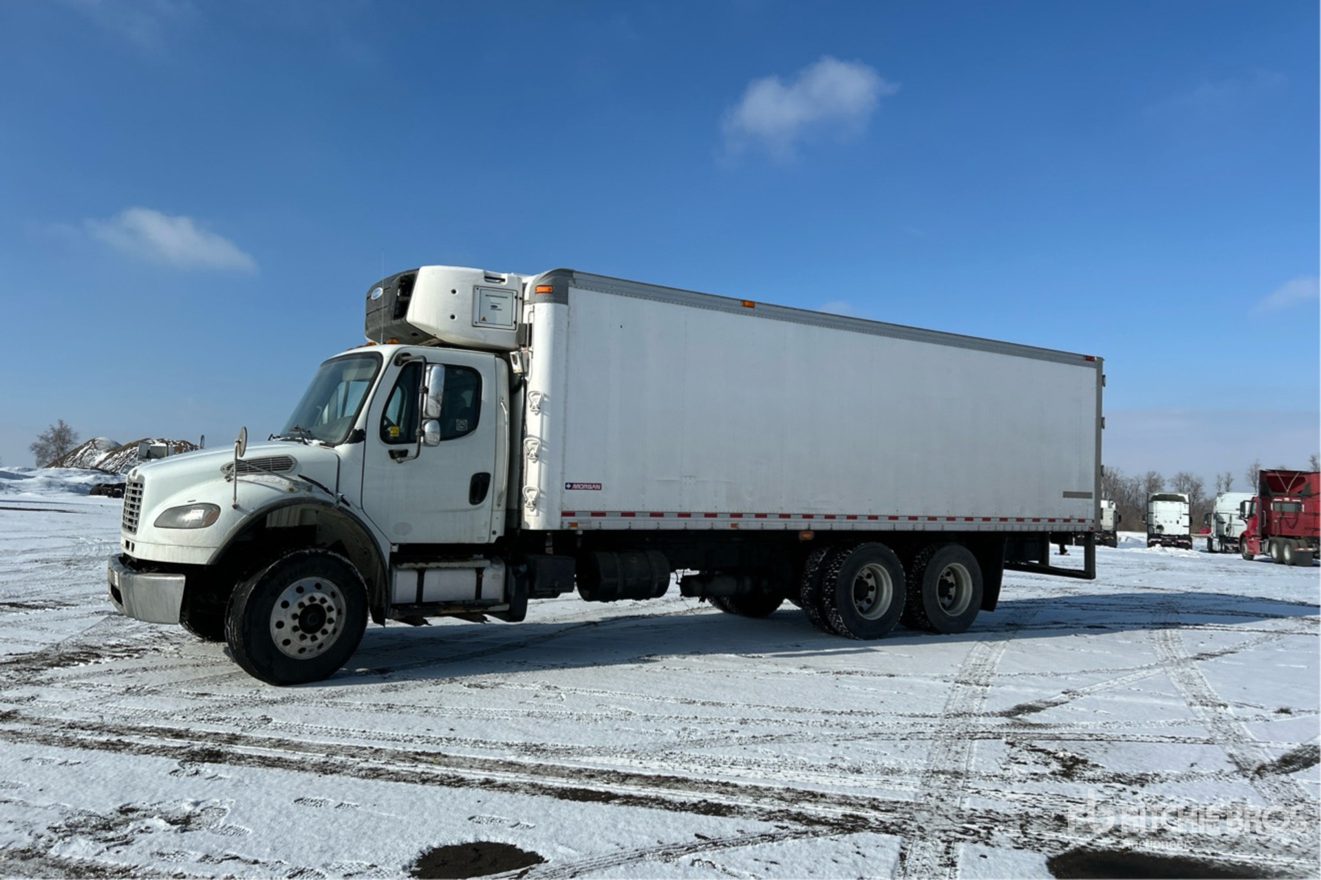 Cummins L9 6 Cylinder Diesel 270 hp Engine, 2017 US EPA Label, CARB Compliant, 10934 Engine hrs, Allison 3000 Automatic Transmission, Differential Lock, 14600 lb Front Axle, 40000 lb Rears, 54600 lb GVWR, Aluminum Wheels, 11R22.5, Air Ride Suspension, 254 in Wheelbase, Carrier SUPRA950 MT Reefer Unit, 2-Zone, Morgan 26 ft x 102 in Wide x 80 in High Body, Ducted Floor