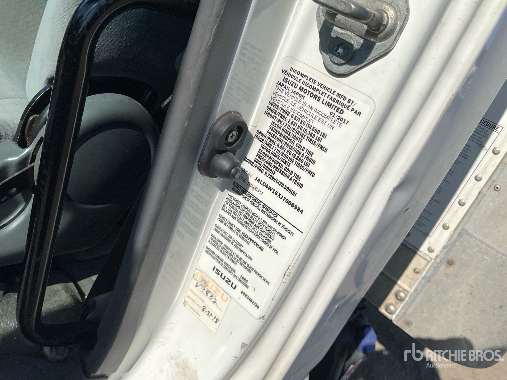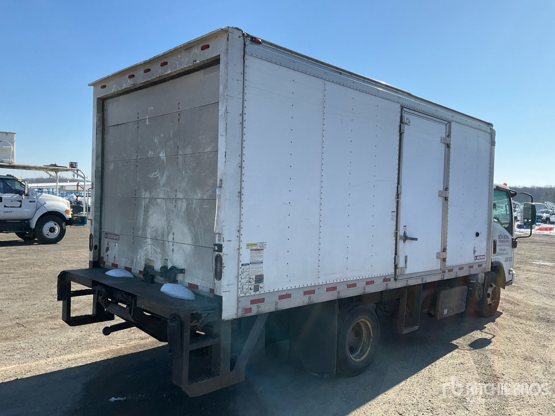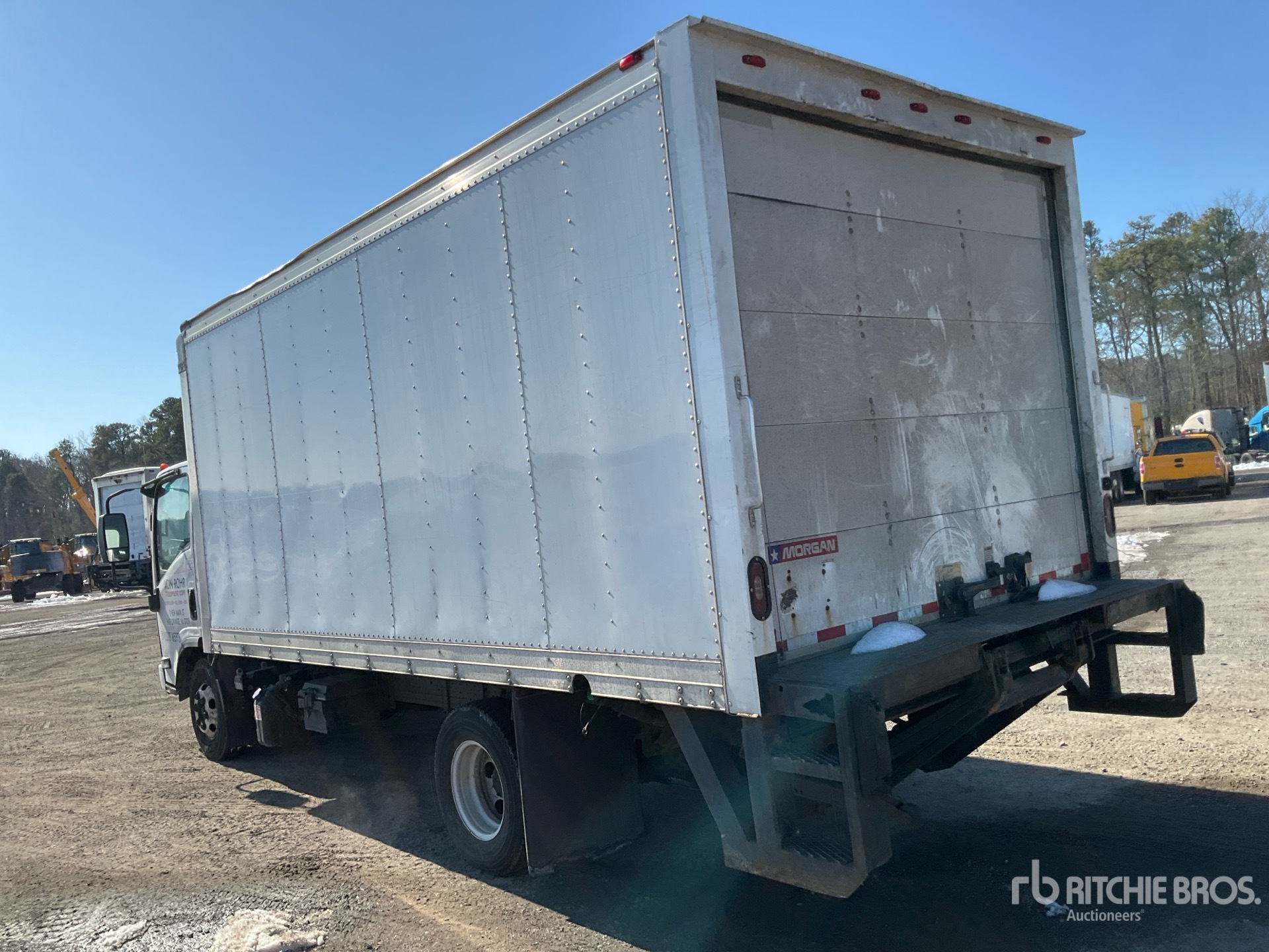 Isuzu 4 Cylinder 317 cid Diesel 210 hp Engine, 2017 US EPA Label, Requires Diesel Exhaust Fluid, Automatic Transmission, 5360 lb Front Axle, 9880 lb Rears, 14500 lb GVWR, 215/85R16, Spring Suspension, 152 in Wheelbase, Morgan 16 ft x 96 in Wide x 80 in High Body, Liftgate