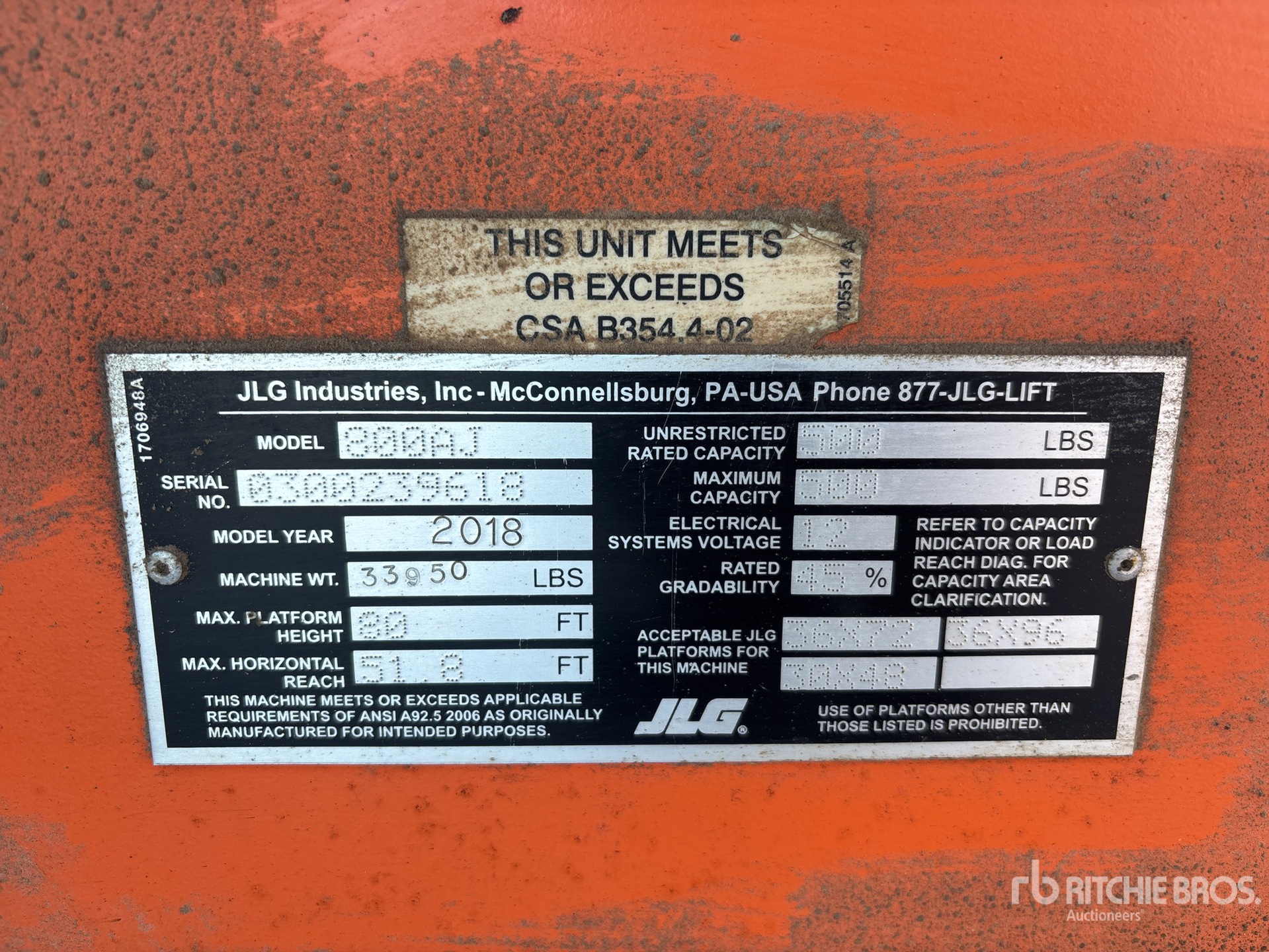 80 ft Max Platform Height, 500 lb Max Weight Capacity, Jib, Power to Platform, Onboard Generator, 2017 US EPA Label, Deutz TD2.9L4 4 Cylinder 67 hp 2.9 L Diesel Engine, 15-625 NHS Tires