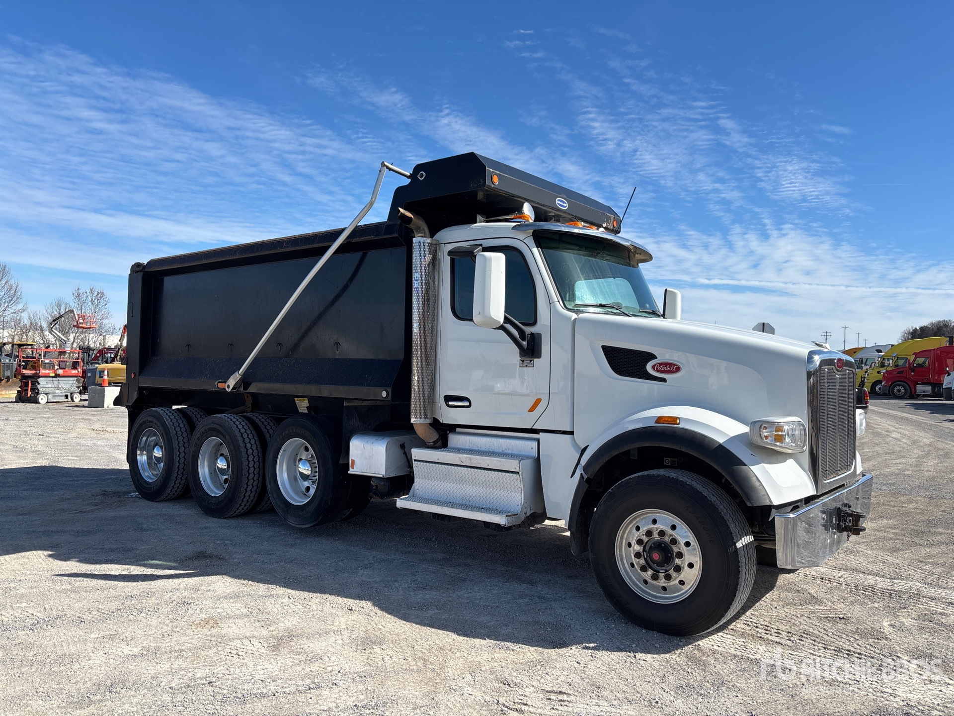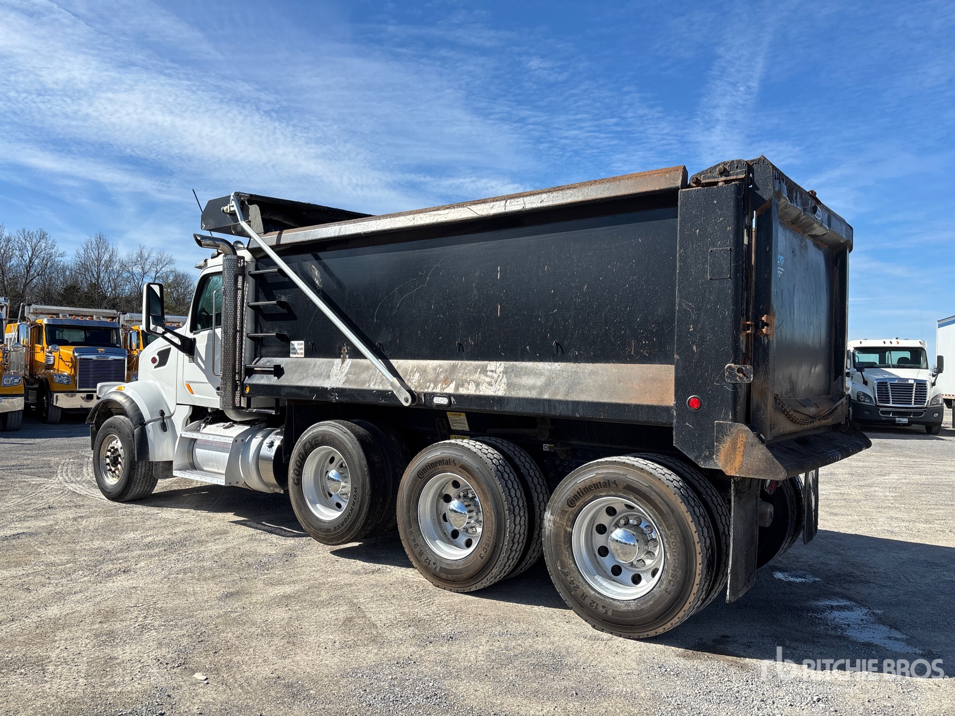 Located in Lane 1 Spot 7, Cummins X15 6 Cylinder 15 L Diesel 485 hp Engine, 2017 US EPA Label, Requires Diesel Exhaust Fluid, 14565 Engine hrs, Engine Brake, Eaton Fuller RTO-16908LL 8LL Manual Transmission, Double Differential Locks, 20000 lb Front Axle, 40000 lb Rears, 60000 lb GVWR, Aluminum Wheels, 385/65R22.5 Front Tires, 11R24.5 Rear Tires, Dual Steering Boxes, Hendrickson RT/RTE Series Suspension, 232 in Wheelbase, PTO, Duraclass 16 ft Long x 5 ft High Steel Body, Round Bottom, Electric Roll Tarp