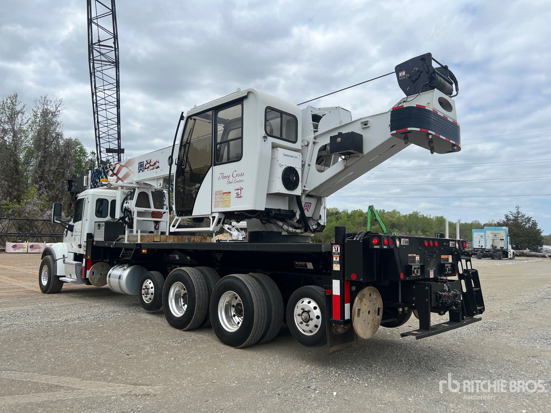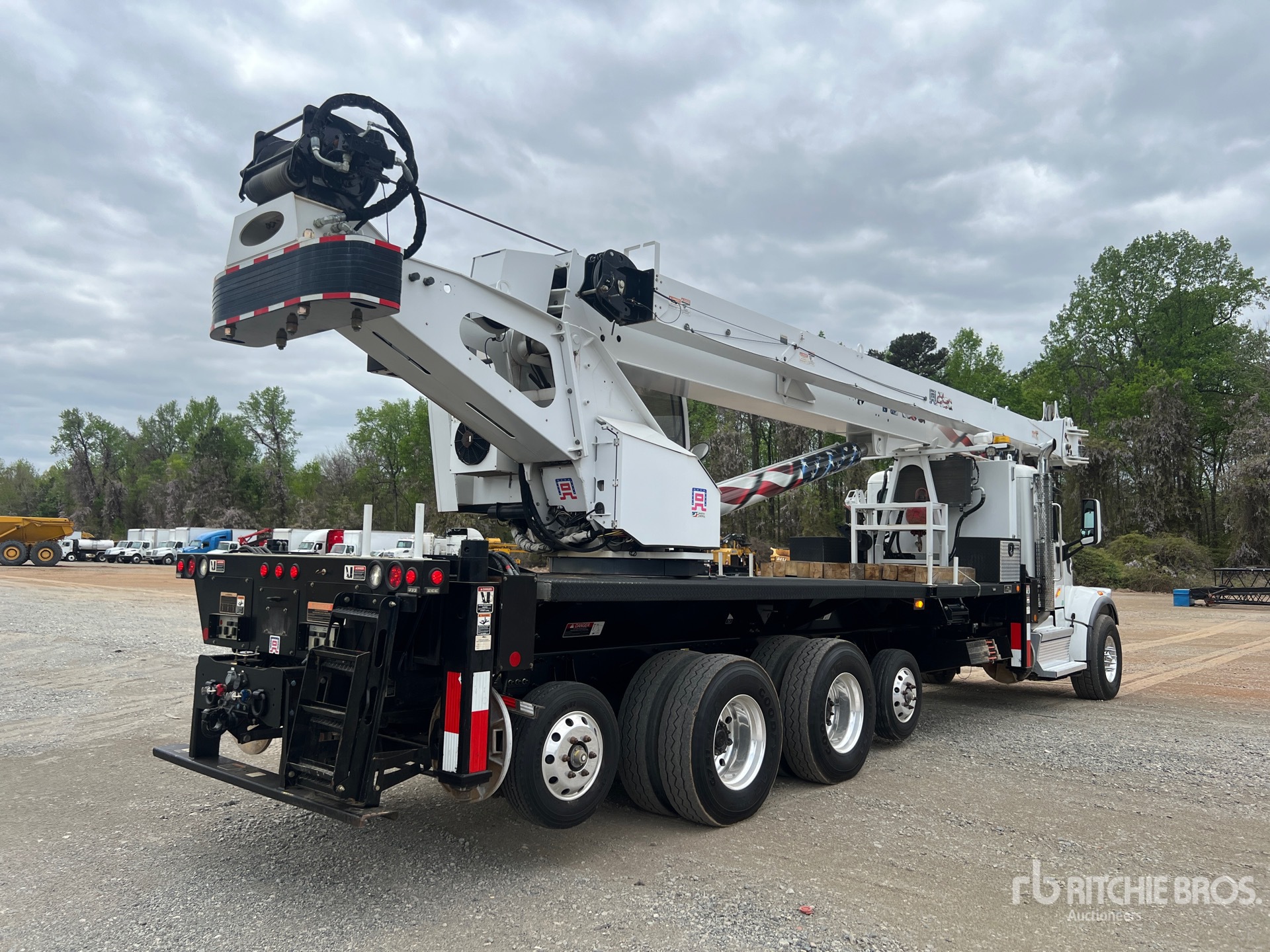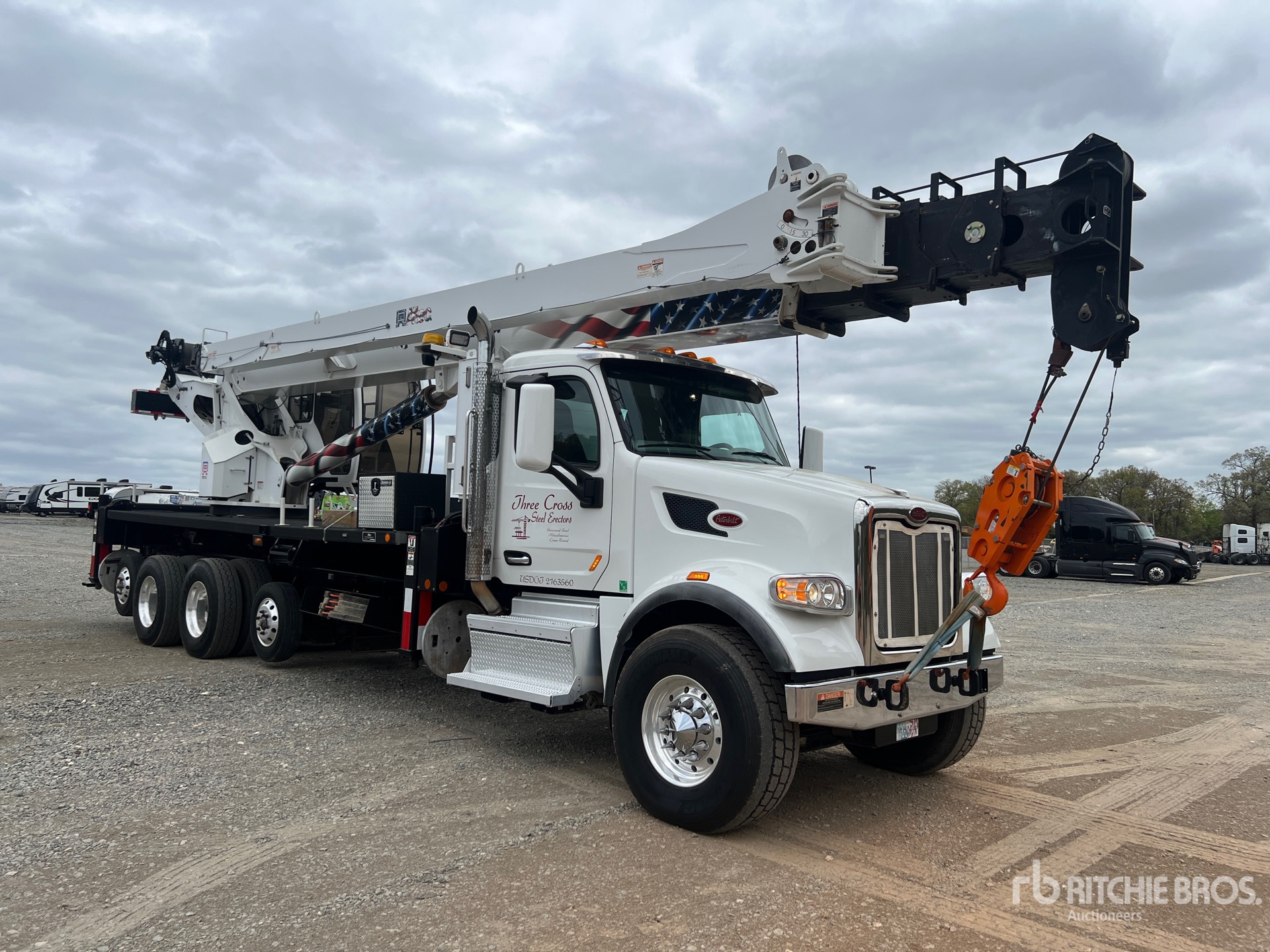 Paccar MX-13 6 Cylinder Diesel 380 hp Engine, 2018 US EPA Label, CARB Compliant, Requires Diesel Exhaust Fluid, 4321 Engine hrs, Engine Brake, Allison Automated Transmission, 20000 lb Front Axle, 68000 lb Rears, 80000 lb GVWR, Air Ride Cab, Aluminum Wheels, 425/65R22.5 Front Tires, 12R22.5 Rear Tires, Steerable Air Lift Tag Axle, Dual Steering Boxes, Hendrickson Haulmaax Rubber over Walking Beam Suspension, 220 in Wheelbase, PTO, 35 ft - 127 ft 5 Section Boom, 35 ft - 52 ft Jib, 232 lb Ovrehaul Ball Brandy 370 lb 3 Sheave Hook Block, Tilting Enclosed Cab w/ Air Conditioner, Altec Load Moment Indicator, Out and Down Outriggers, Rear Outriggers, Altec AC45-127S-OJ 90000 lb 5 Section Hydraulic Crane, 8 ft 9 in x 93 in Bed, Pintle Hitch