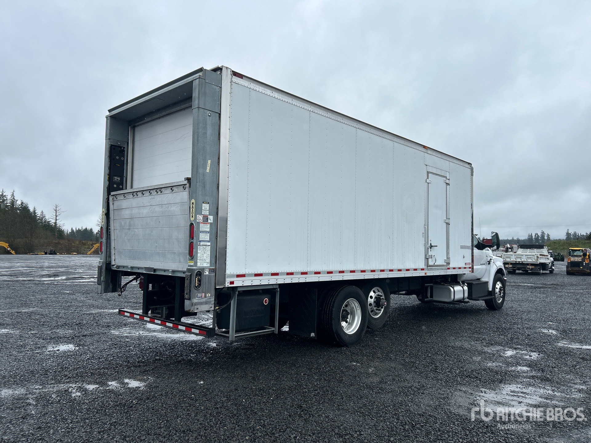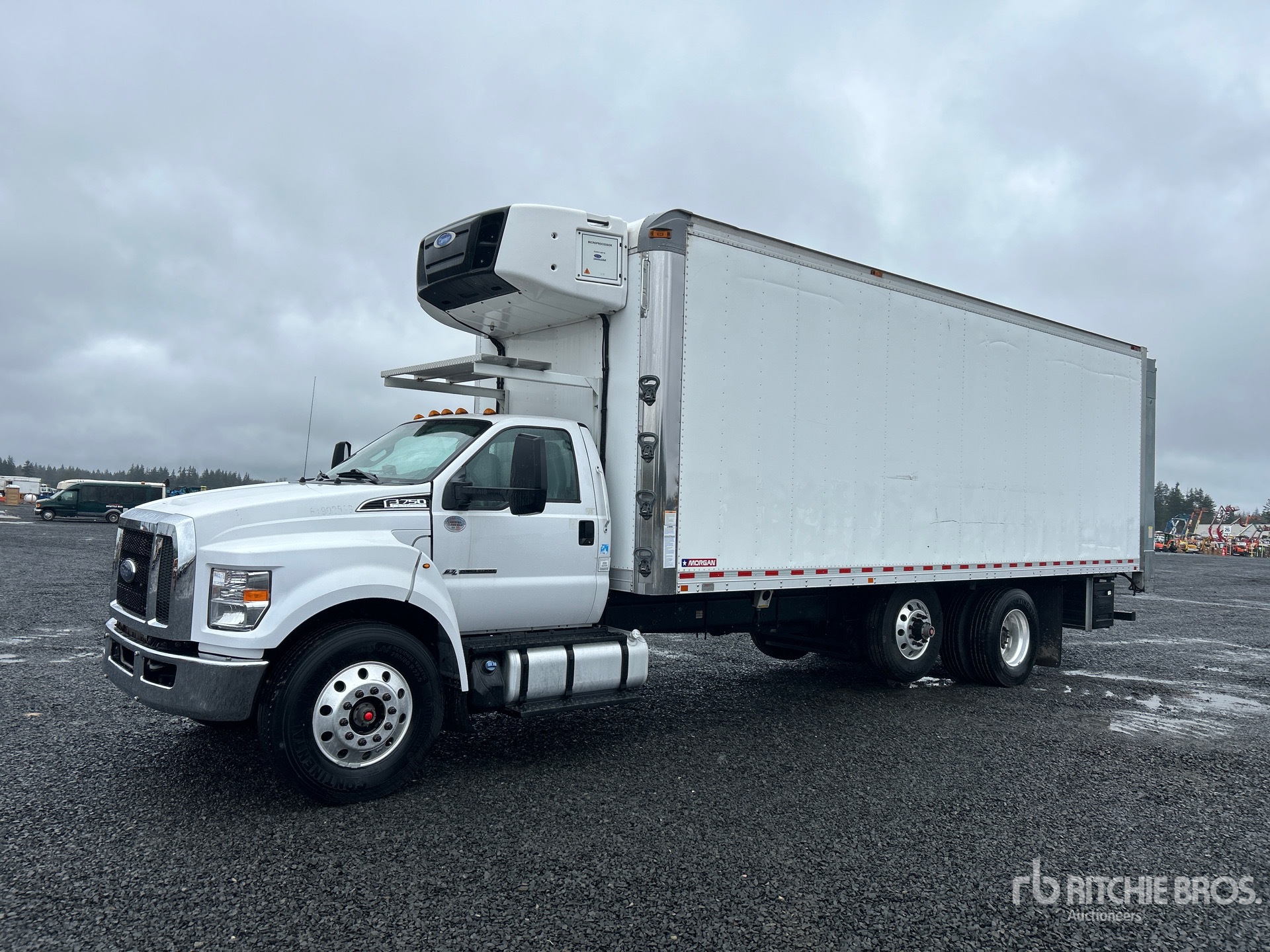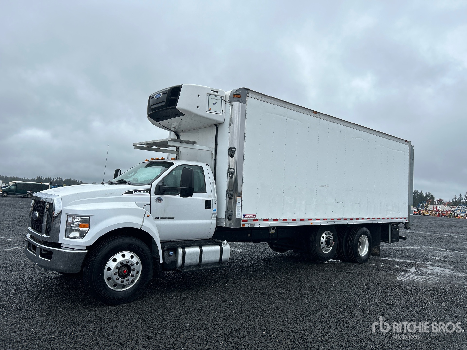 Located in Lane 33 Spot 7, Ford Power stroke V8 6.7 L Diesel 300 hp Engine, 2019 US EPA Label, Requires Diesel Exhaust Fluid, Exhaust Brake, Automatic Transmission, 14000 lb Front Axle, 37000 lb Rears, 37000 lb GVWR, Aluminum Wheels, 295/80R22.5, Air Ride Suspension, 281 in Wheelbase, Carrier Reefer Unit, 2-Zone, Morgan 26 ft x 102 in Wide x 103 in High Body, Curbside Door, Liftgate