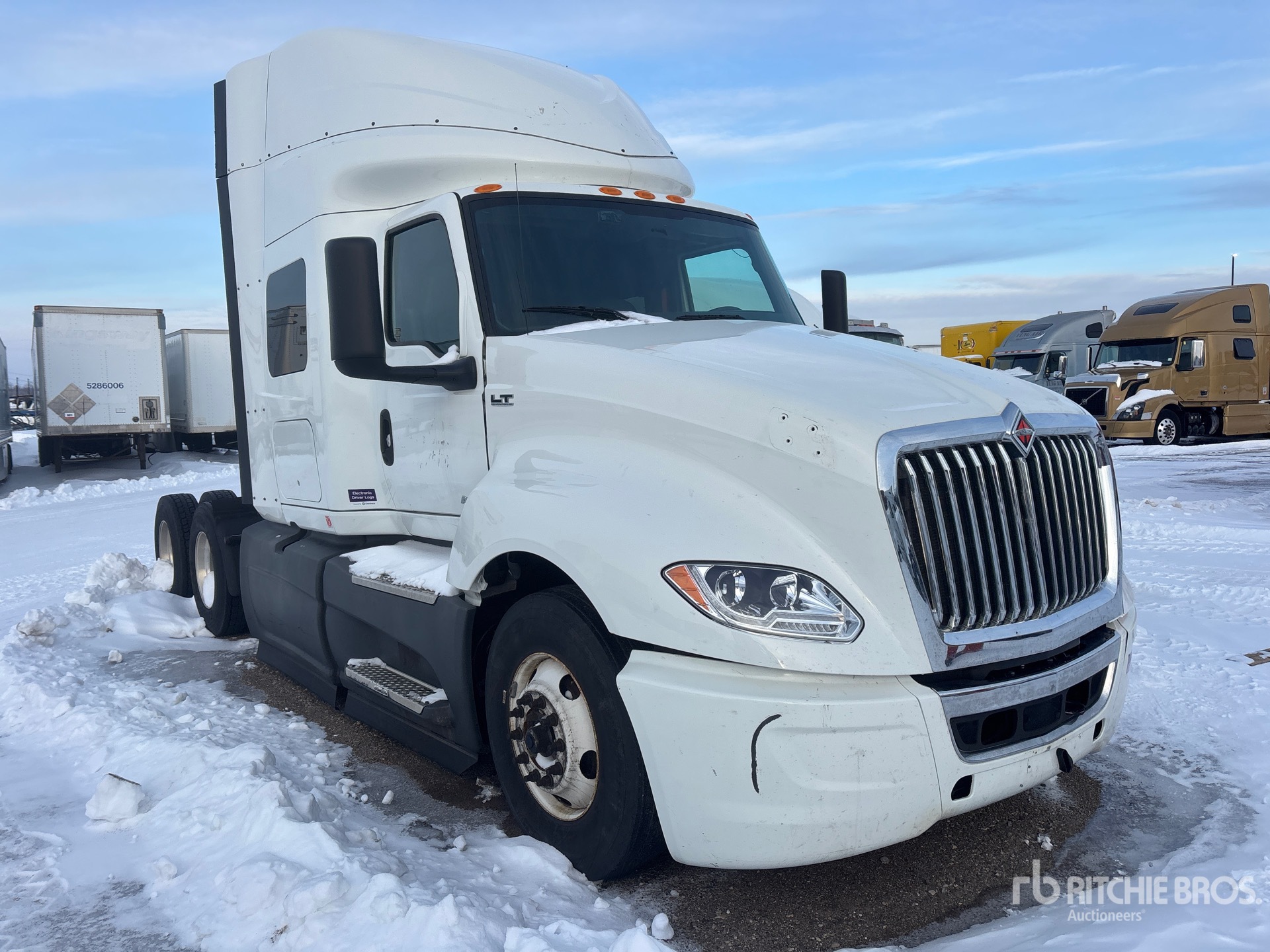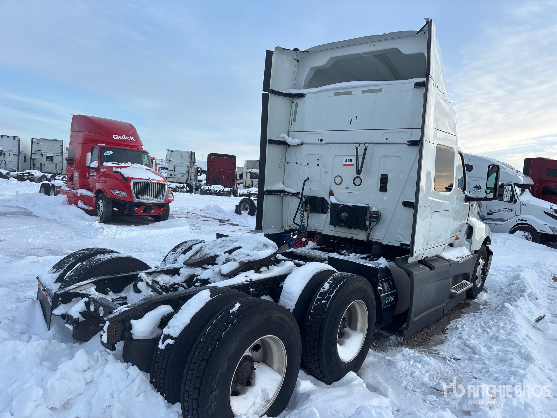 Located in Lane 19 Spot 79, International A26 Engine, 3852 Engine hrs, Automated Transmission, 13200 lb Front Axle, 40000 lb Rears, 53200 lb GVWR, Engine Brake, 56 in Mid Roof Sleeper Cab, Auxiliary Power Unit, 219 in Wheelbase, Air Suspension, Aluminum Wheels, 11R22.5 Front Tires, 295/75R22.5 Rear Tires, Air Sliding 5th Wheel, Dual Fuel Tanks