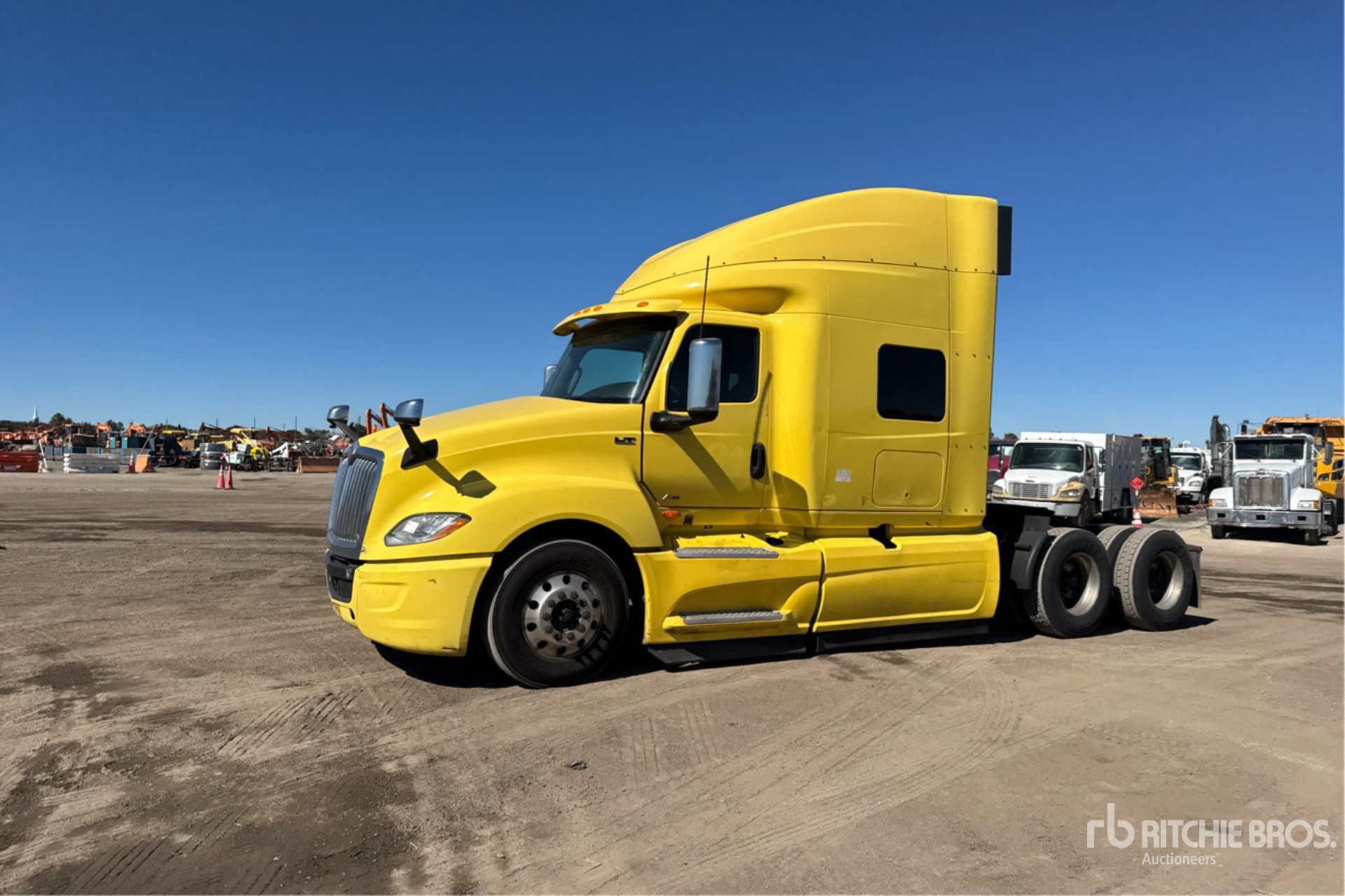 Located in Spot 21, International A26 Engine, 9522 Engine hrs, Automated Transmission, 12350 lb Front Axle, 40000 lb Rears, 52350 lb GVWR, 73 in Mid Roof Sleeper Cab, Bunk Beds, Bunk Heater, Auxiliary Power Unit, 230 in Wheelbase, Air Suspension, Aluminum Wheels, 295/75R22.5 Front Tires, 295/75R22.5 Rear Tires, Air Sliding 5th Wheel, Dual Fuel Tanks