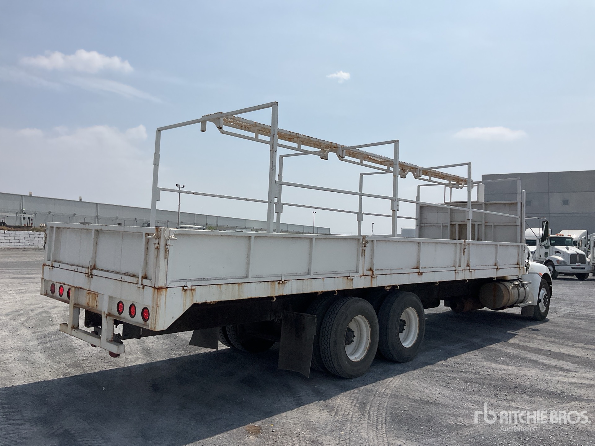 Cummins ISL8.9E5 Diesel 315 hp Engine, Requires Diesel Exhaust Fluid, 4361 Engine hrs, Exhaust Brake, Eaton Fuller FR9210B 10-Speed Transmission, 13200 lb Front Axle, 40000 lb Rears, 4.33:1 Axle Ratio, 11R22.5, Hendrickson Air Ride Suspension, 283 in Wheelbase, 29 ft 7 in x 103 in Bed, / Motor Cummins ISL8.9E5 Diesel 315 hp, Requiere Urea, 4361 Horas de Motor, Freno de Escape, Transmision Manual Eaton Fuller FR9210B 10 Velocidades, Eje Frontal 13200 lb, Traseros 40000 lb, Paso Diferencial 4.33:1, 295/75R22.5, Suspension Hendrickson de Aire, Distancia entre Ejes 283 in, Plataforma 29 ft 7 in x 103 in
