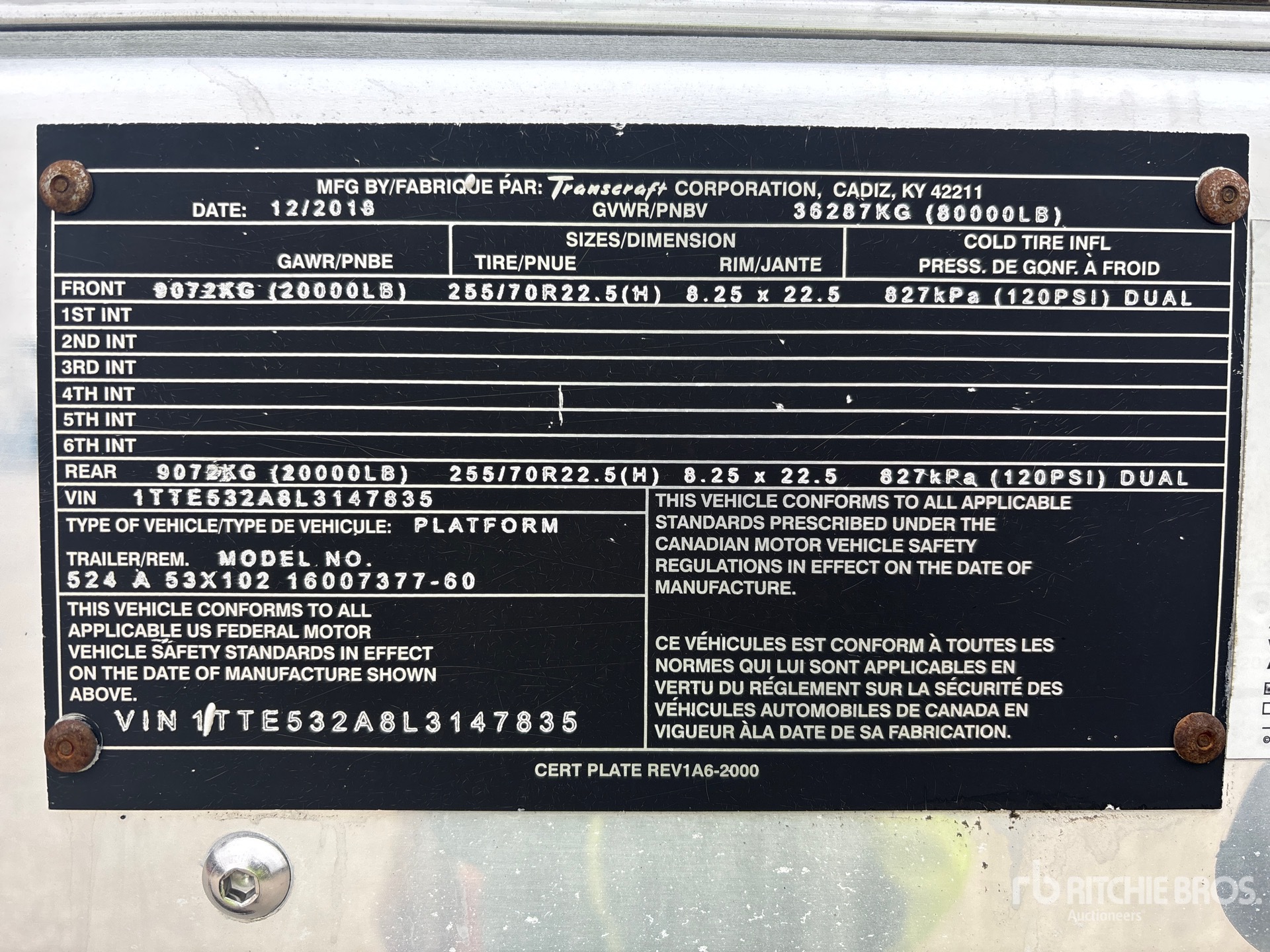 Các số đo được đưa ra chỉ là ước tính. Kích thước chịu tải thực tế có thể khác tùy theo chiều cao của xe tải/rơ-moóc và cấu hình/vị trí phần máy chịu tải. Người mua có trách nhiệm đo tất cả các tải trọng trước khi rời khỏi địa điểm đấu giá của chúng tôi để đảm bảo tải trọng đủ an toàn để được vận chuyển. Người mua phải xác nhận tất cả các số đo. Không dựa vào các số đo này để phục vụ mục đích vận chuyển.