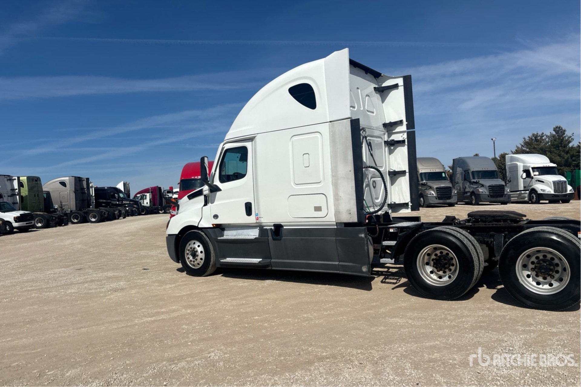 Located in Lane 15 Spot 22, Detroit DD15 400 hp Engine, 2020 US EPA Label, 19115.24 Engine hrs, Detroit DT12-1750-DH1 12-Speed Automated Transmission, 12000 lb Front Axle, 40000 lb Rears, 52000 lb GVWR, Engine Brake, 70 in High Rise Sleeper Cab, Bunk Beds, 225 in Wheelbase, Air Suspension, Aluminum Outer Wheels, 295/75R22.5, Air Sliding 5th Wheel, Dual Fuel Tanks