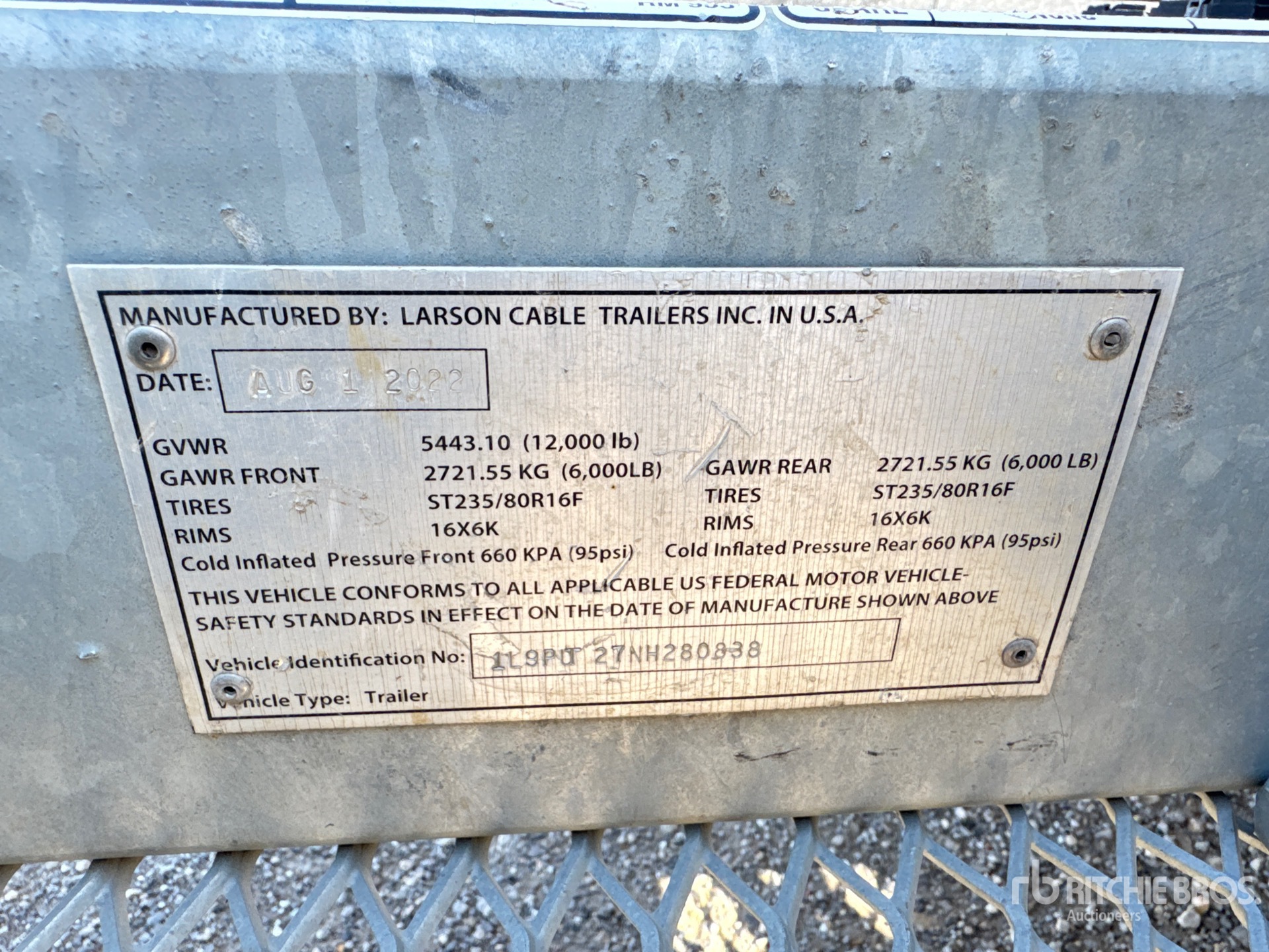 2022 US EPA Label, Vanguard 2 Cylinder 23 hp 627 cc Gasoline Engine, Aluminum Frame, Lunette Ring Hitch, Torsion Axle, Electric Brakes, Hydraulic Reel Hoist, 235/80R16 Tires, 12000 lb GVWR