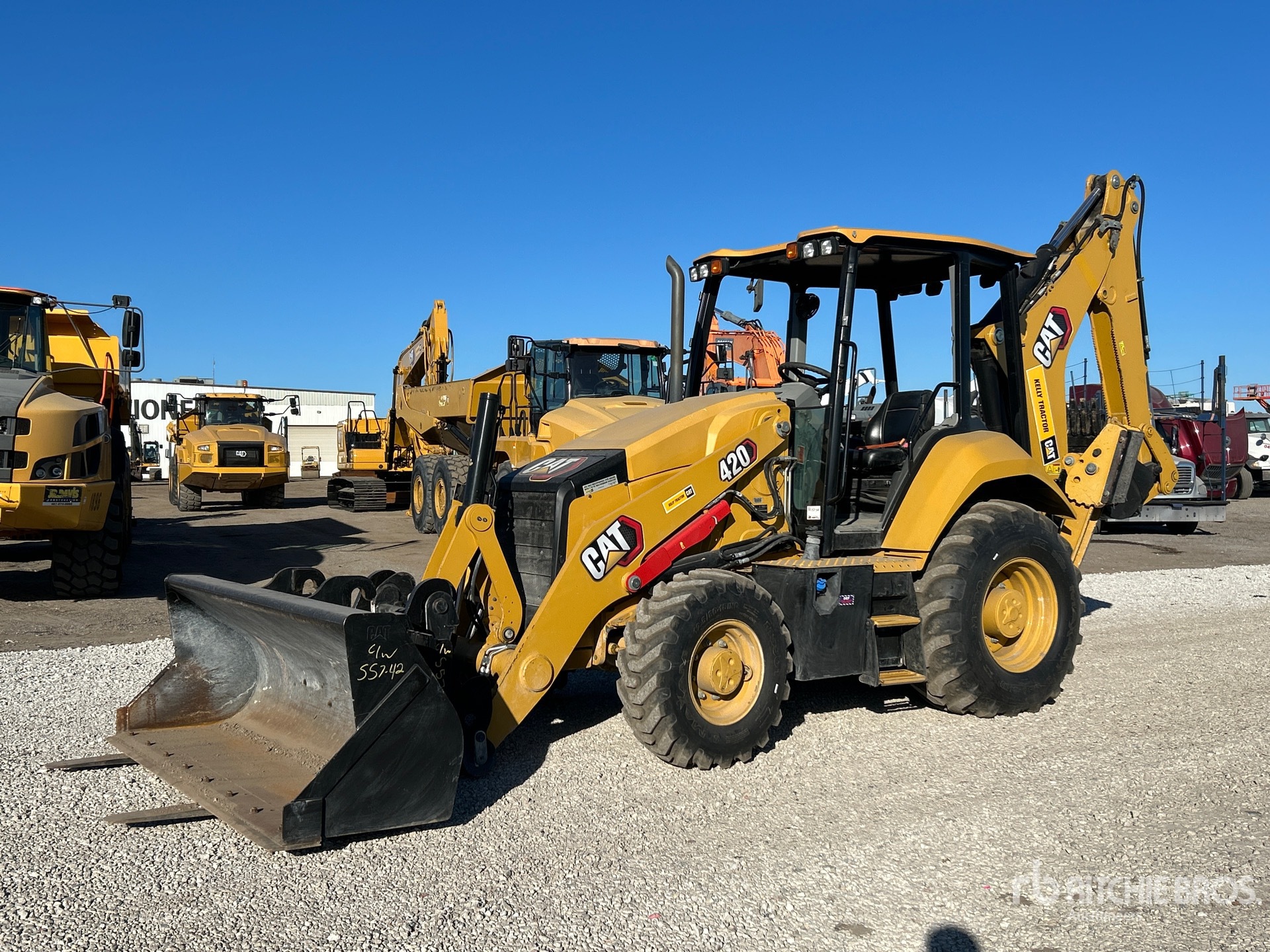 Open Operator Station, Backhoe Pilot Controls, Control Pattern Changer, Powershift Transmission, Requires Diesel Exhaust Fluid, Auxiliary Hydraulics, Hydraulic Coupler, 95 in Loader Bucket, Forks, 19 in Backhoe Digging Bucket, Thumb Bracket, Equipment-from-Kelly-Tractor