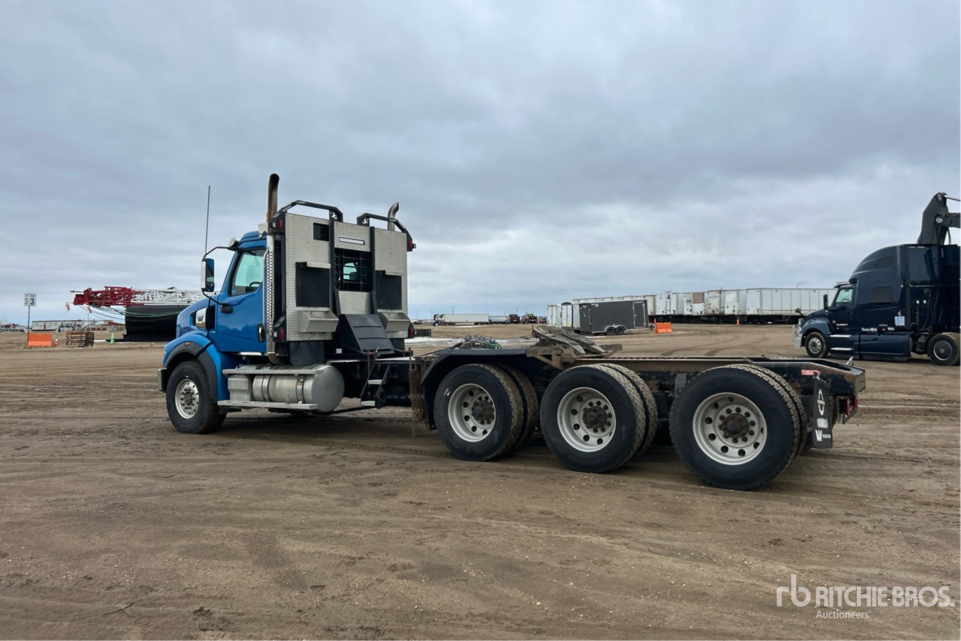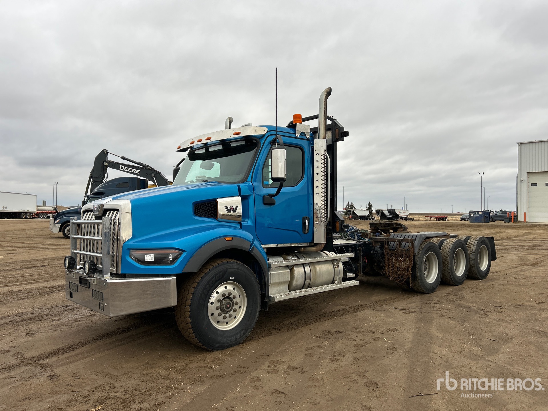 Cummins X15 565 hp Engine, 2022 US EPA Label, 5394 Engine hrs, Eaton Fuller RTLO-20918B 18-Speed Manual Transmission, 16000 lb Front Axle, 64000 lb Rears, 80000 lb GVWR, Engine Brake, 261 in Wheelbase, Air Suspension, Aluminum Wheels, 425/65R22.5 Front Tires, 11R24.5 Rear Tires, Dual Steering Boxes, Air Sliding 5th Wheel, Dual Fuel Tanks, Headache Rack, On-Board Scale