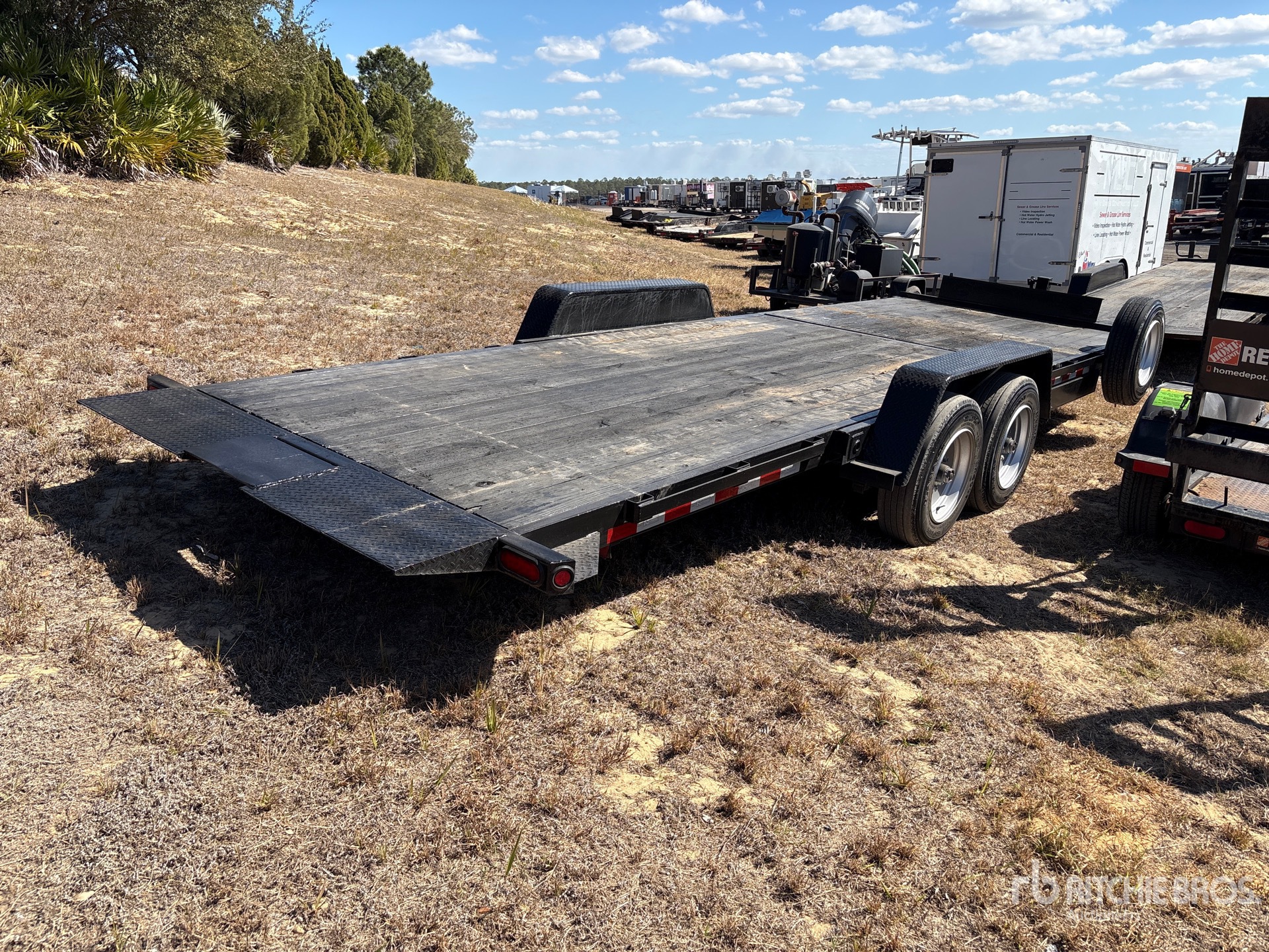 Lunette Ring Hitch, Spring Suspension, Electric Brakes, Storage Compartments, 15 ft Deck Tilting Length, 78 in Deck Width, 135-75-17.5 Tires, 12000 lb GVWR