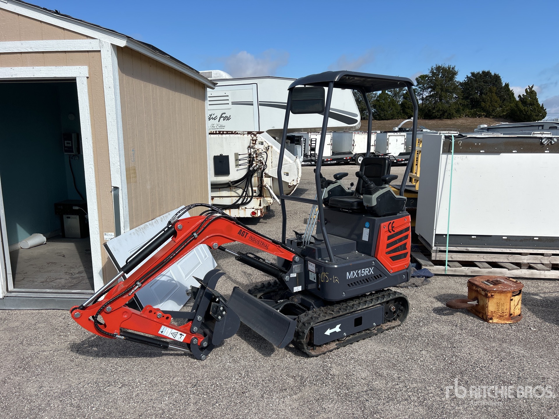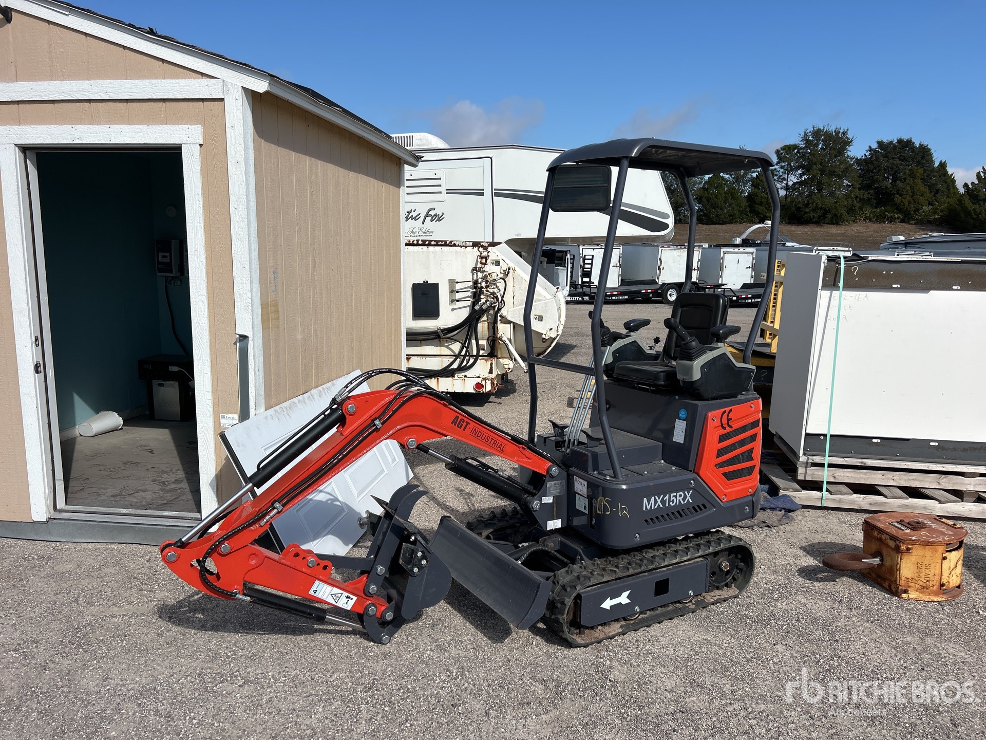 2 ft 7 in Stick, Auxiliary Hydraulic Plumbing, Backfill Blade, 7 in Rubber Tracks, 16 in Digging Bucket, Manual Thumb
