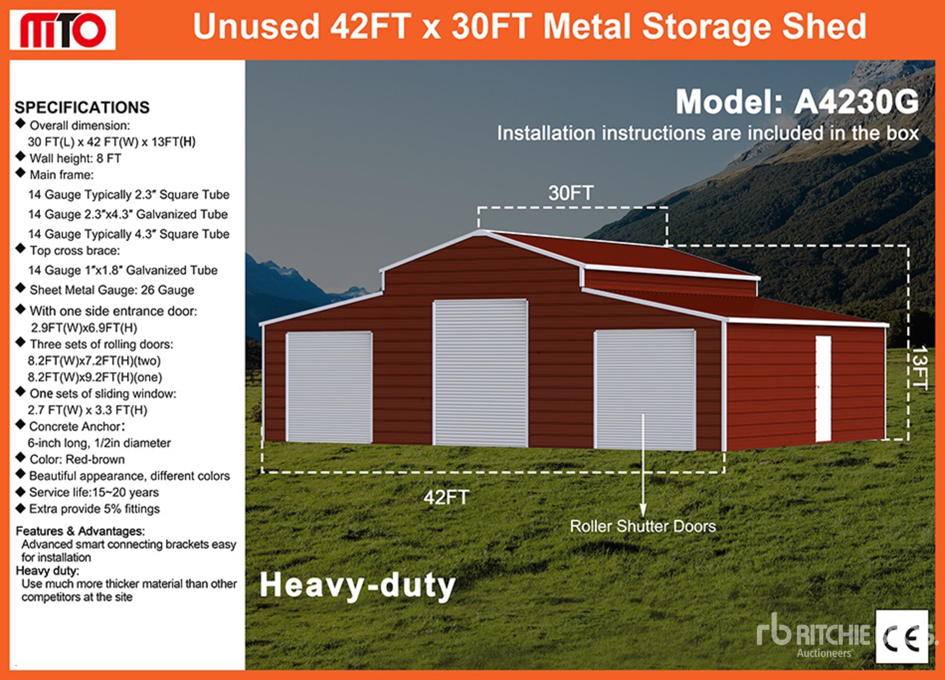 2026 MTO A4230G 42 ft x 30 ft Metal Shed (Unused)