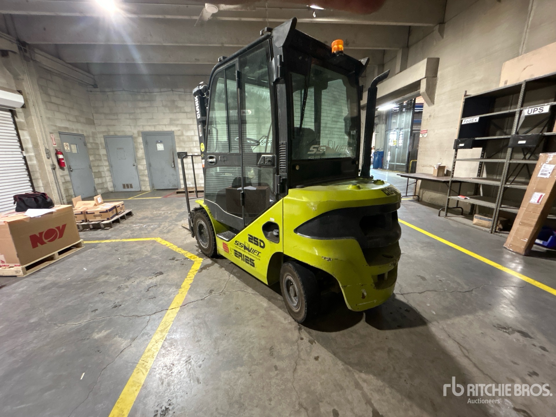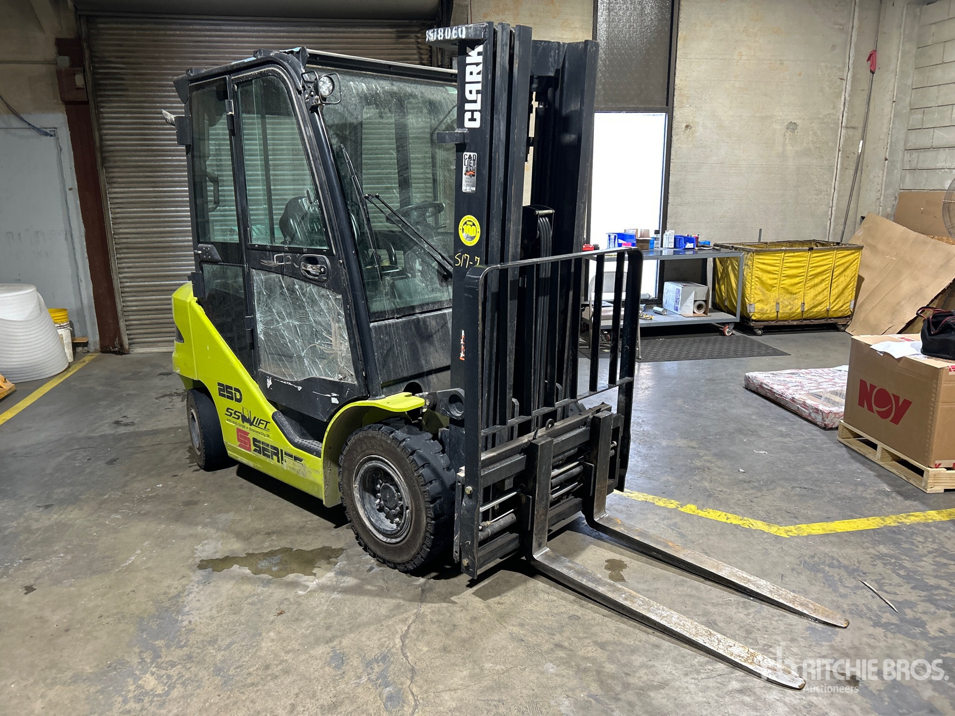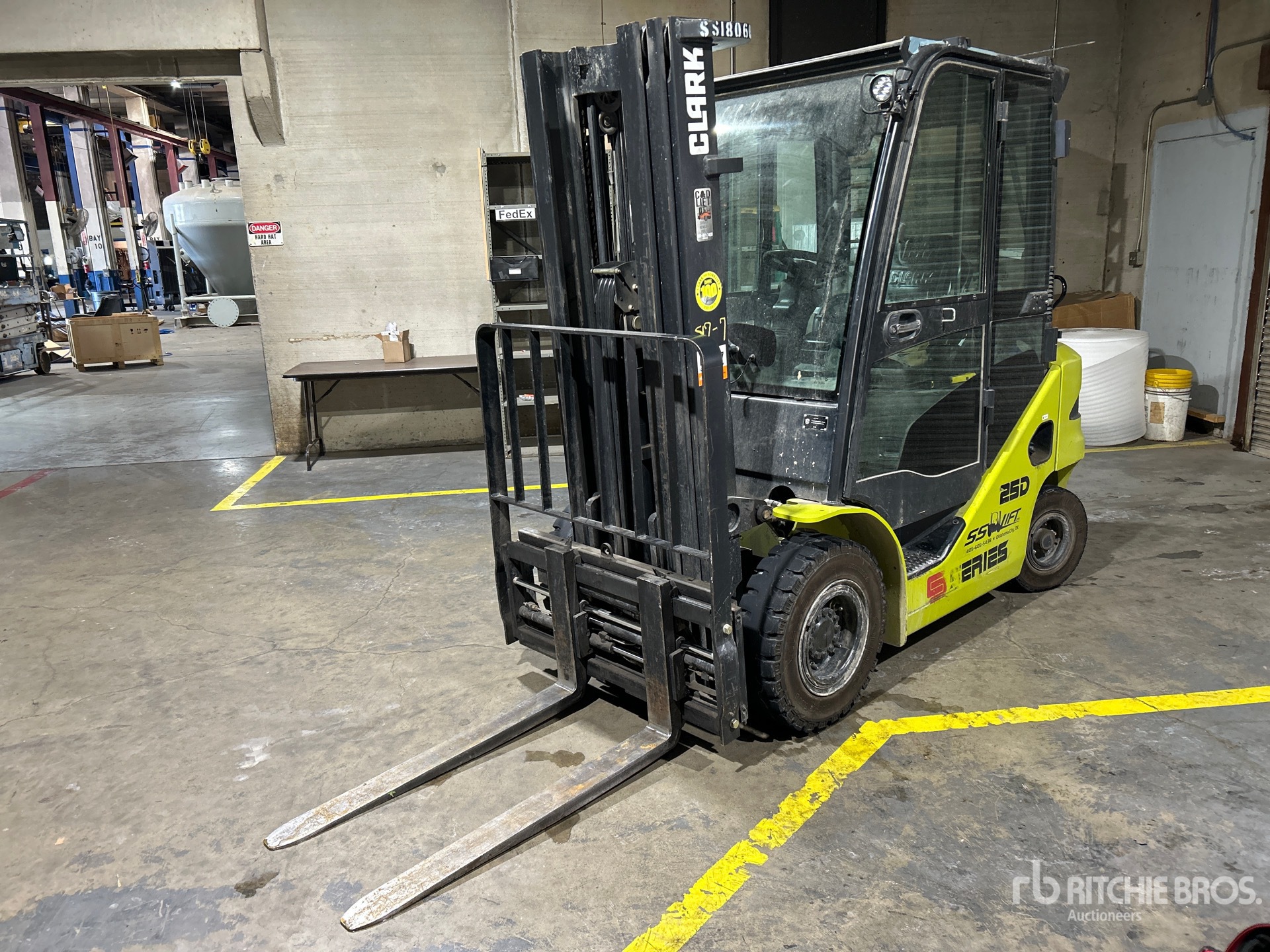 Enclosed Cab, 3 Stage Mast, 189 in Max Lift Height, 84 in Lowered Mast Height, 42 in Forks, Side Shift, 4 Cylinder Diesel Engine