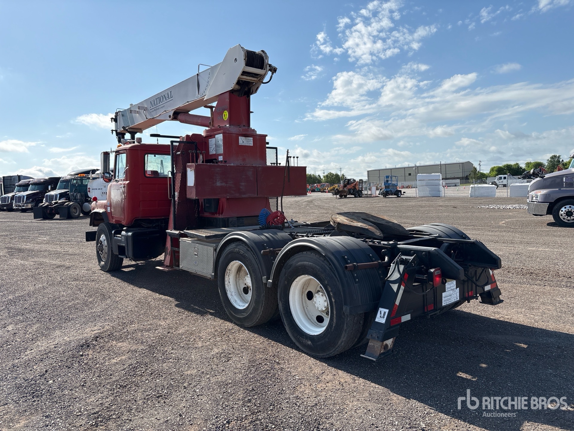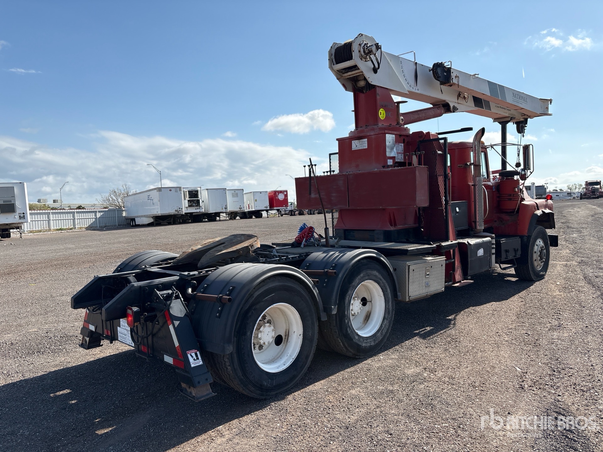 Diesel Engine, 20774 Engine hrs, Engine Brake, Eaton Fuller 8-Speed Manual Transmission, Aluminum Front Wheels, 315/80R22.5 Front Tires, 11R22.5 Rear Tires, Double Frame, Spring Suspension, 234 in Wheelbase, PTO, 3 Section Boom, Johnson 1 Sheave 10 ton Capacity Hook Block, Dual Controls, A-Outriggers, Rear Outriggers, Air Sliding 5th Wheel