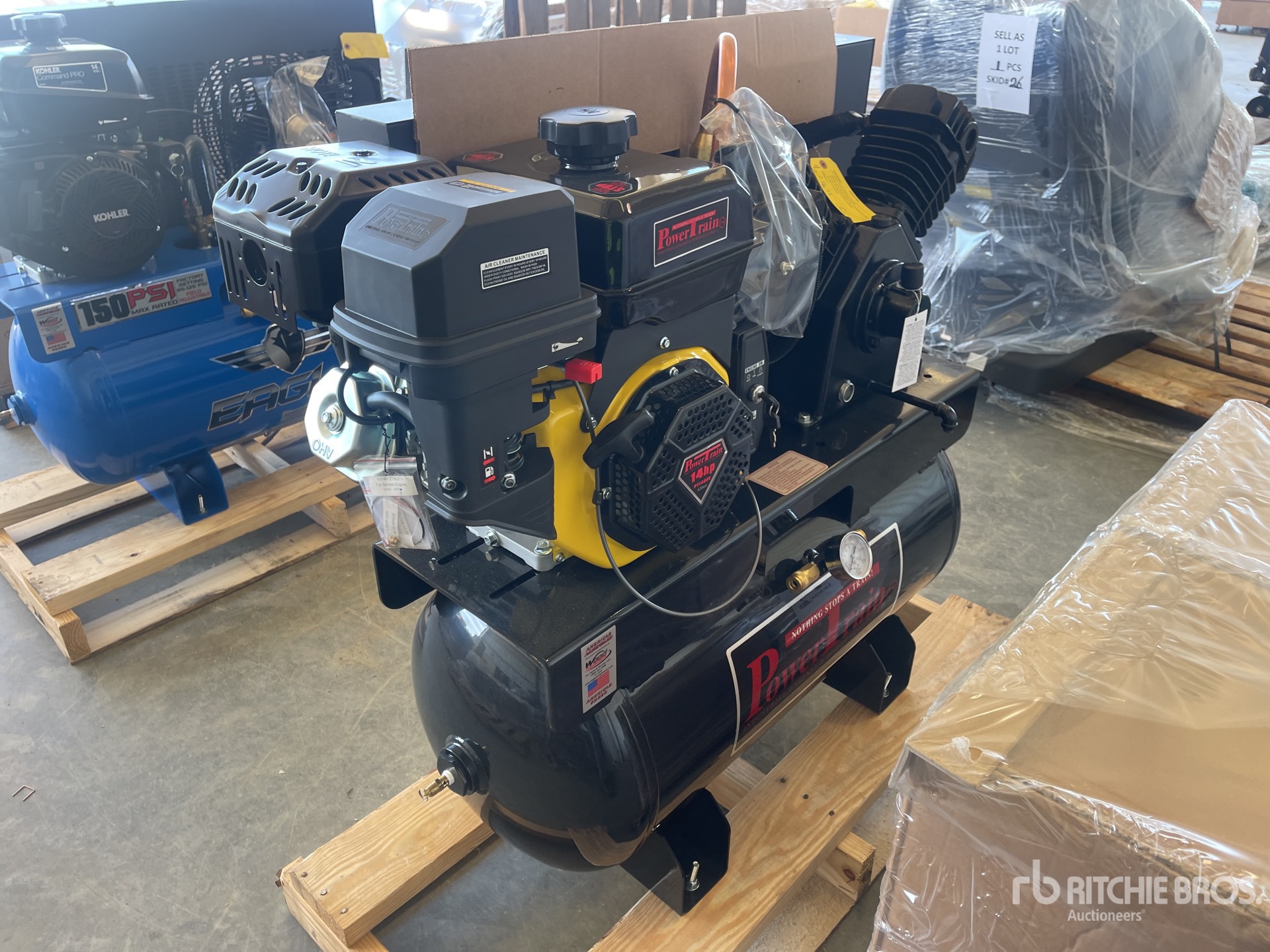 2021 US EPA Label, power train 1 Cylinder Engine, V-Twin Cast Iron Pump, 175 PSI, Two Stage , Elec Start, 18.5 CFM- 'MADE IN THE USA'- 1 YR Factory Warranty