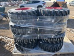 All Tires with Wheels, 12 ply -Rim: Standard orange rim for 12 x 16.5(9.75-16.5) Bobcat skid steer loader tire - Fits the following Bobcat loaders:751, 753, 763, 773, 825, 843, 853, 863, 873, 883, 2000, S130, S150, S160, S175, S185, S205, S220, S250, S300, S510, S530, S550, S570, S590, S595, S630, S650 - Fits 12 x 16.5 tire - Reversible - Rim size 16.5 inches (diameter) x 9.75 inches wide - Offset: 3.70 inches - 8 inch pilot hole - 8 bolt holes - 3 inches between holes - Powder coated Bobcat orange - Tire: Deep tread tire built especially for skid steer and aerial lift equipment - Ideal tire for loose surfaces and heavy-duty service - Extra deep tread and sidewall protection providing excellent cut and chip resistance and outstanding durability - Application of vehicle models: skid steer - arial boom lift, scissor lift, compact tractor, front backhoe, 3-wheel forklift