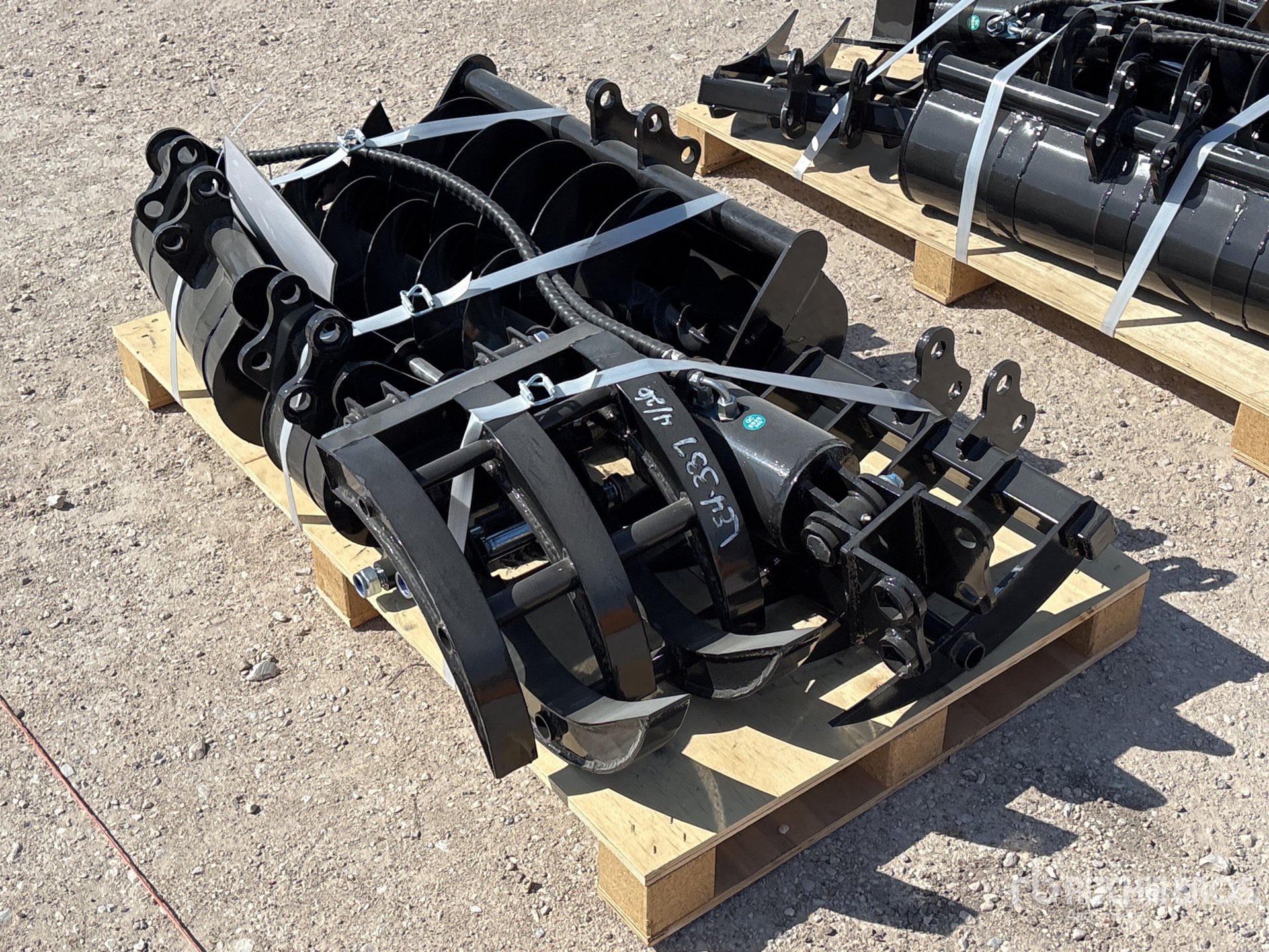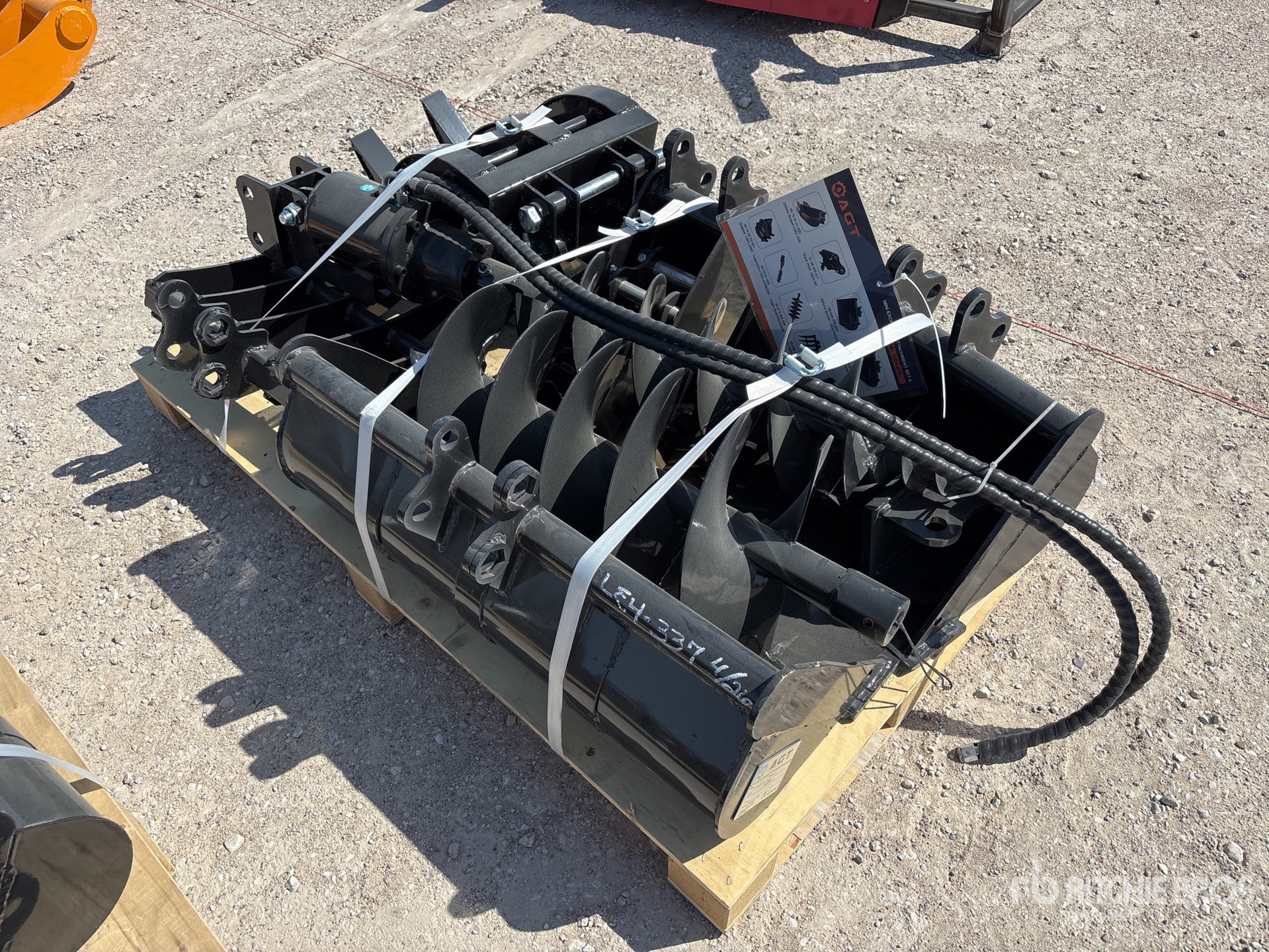 (1) 8 in Bucket, (1) 20 in Bucket, (1) 32 in Bucket, (1) Quick Coupler, (1) Ripper, (1) Grapple, (1) Rake, (1) 8 in Auger, (1) 12 in Auger,