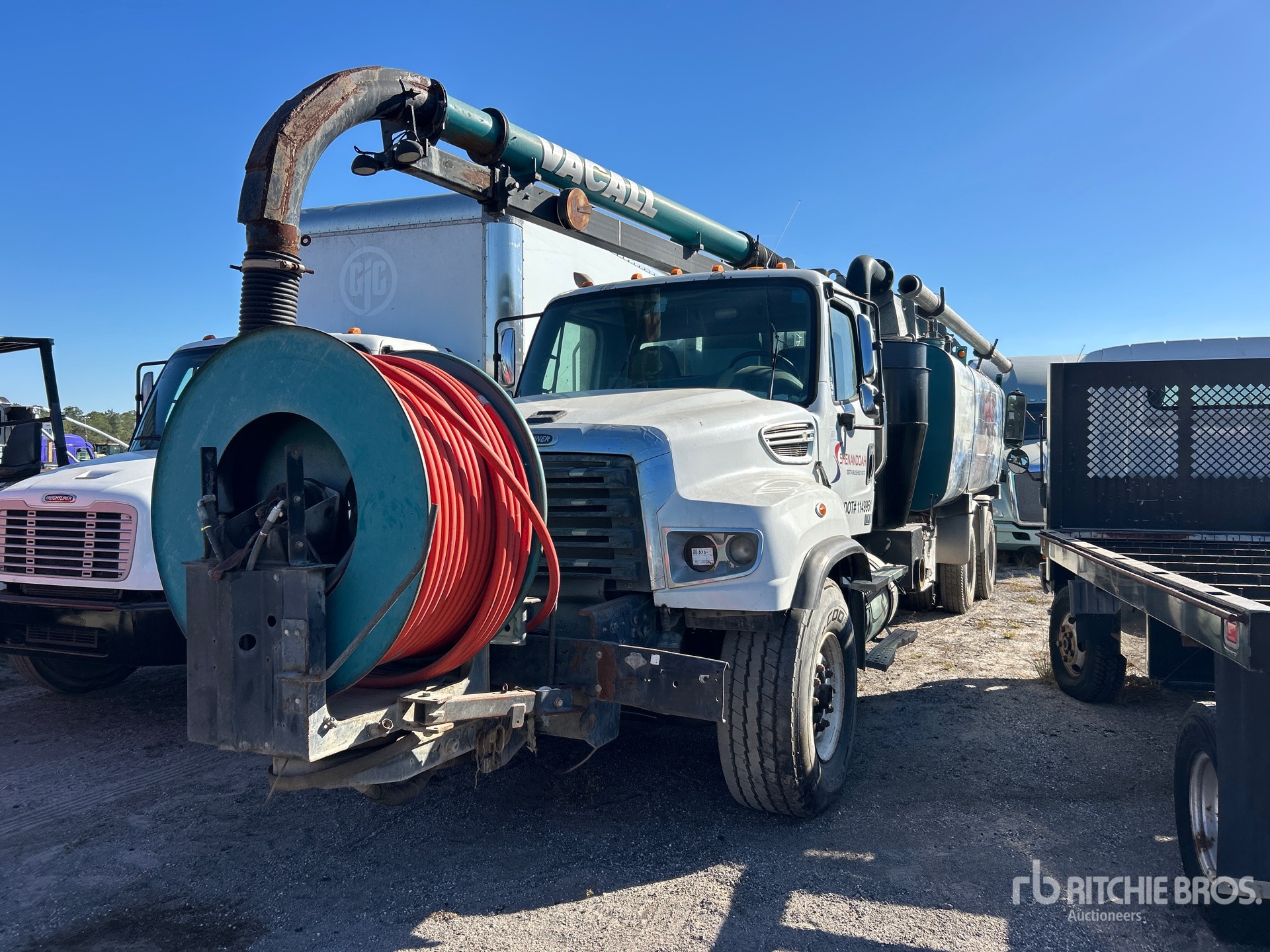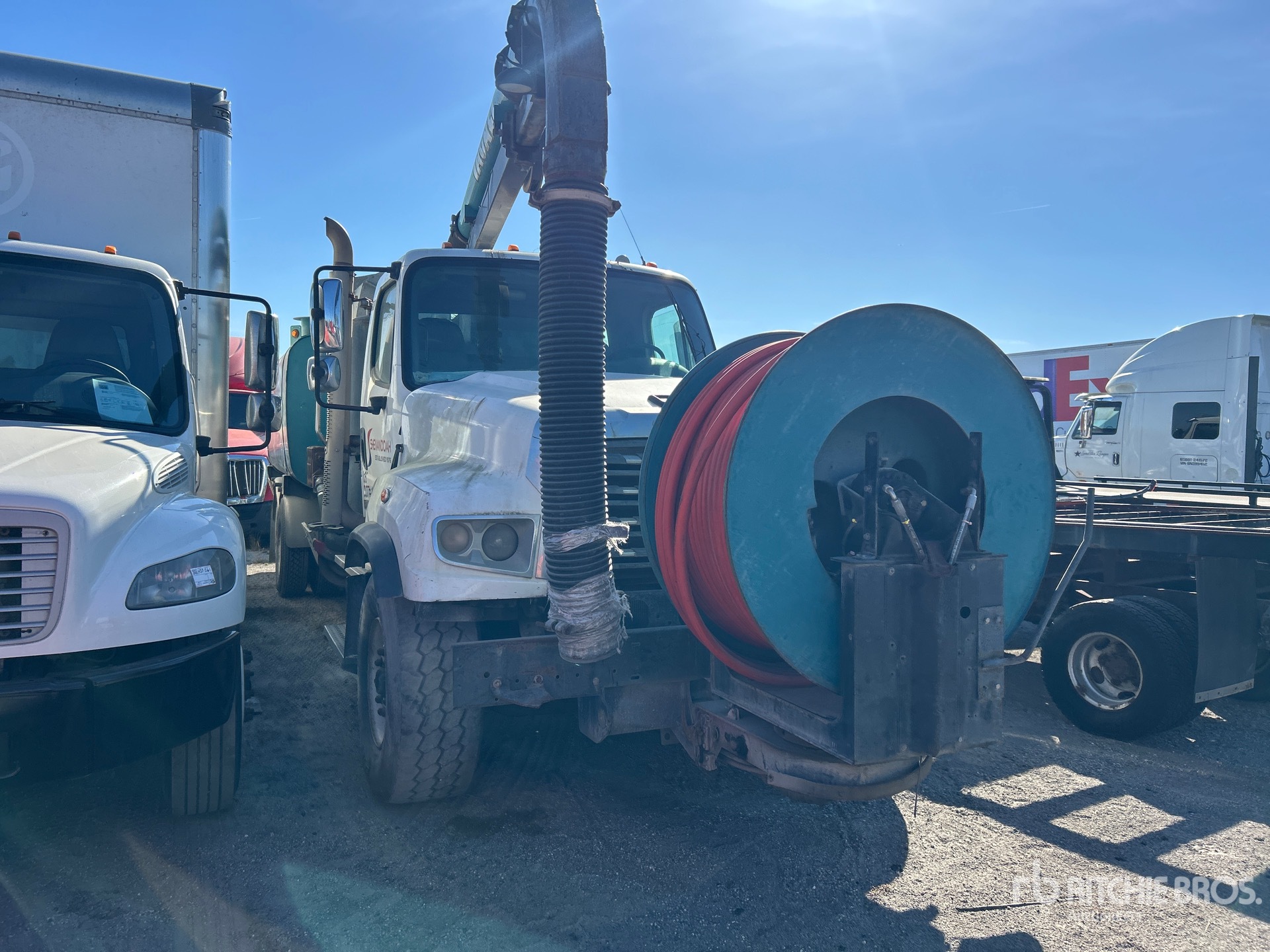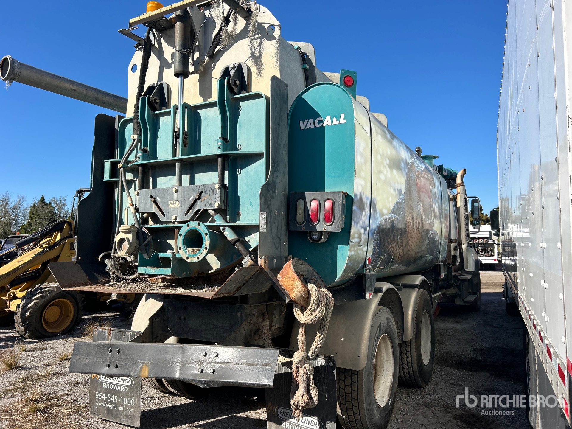 Detroit DD13 6 Cylinder 12.8 L Diesel 410 hp Engine, 2014 US EPA Label, Requires Diesel Exhaust Fluid, Engine Brake, Eaton Fuller FRO-14210C 10-Speed Manual Transmission, 20000 lb Front Axle, 46000 lb Rears, 66000 lb GVWR, Air Ride Cab, 425/65R22.5 Front Tires, 11R22.5 Rear Tires, Hendrickson Spring over Walking Beam Suspension, 275 in Wheelbase, PTO, Steel Debris Tank, Front Hose Reel, Fresh Water Tank, Hydraulic Lift Tailgate, Hydraulic Tailgate Locks, Telescopic Boom, 8 in Suction Hose, PTO Driven Pump, Cordless Remote Control